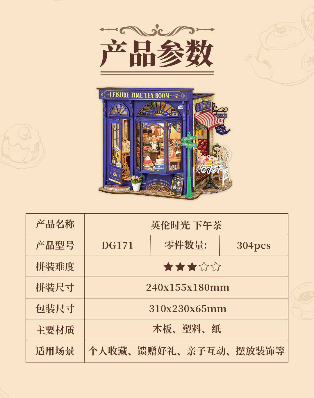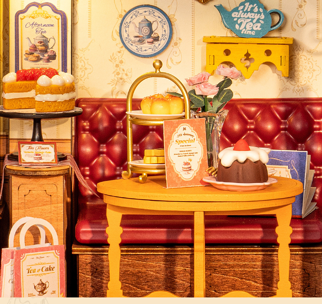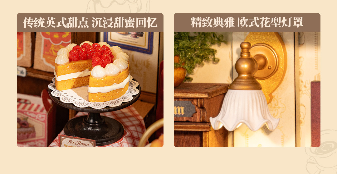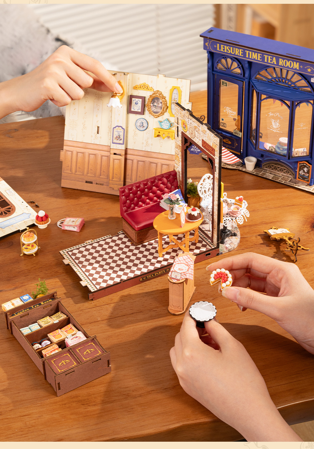 Rolife Ruolai 영국 시간 애프터눈 티 DIY 수제 오두막 작은 집 모델 미니 장면 빌딩 블록 여성