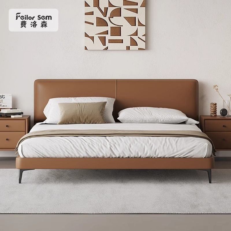 새로운 스타일 얇은 침대 침대 작은 아파트 가죽 침대 현대 간단한 마스터 침대 더블 이탈리아 미니멀리스트 침대스토어 가기