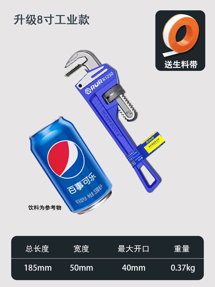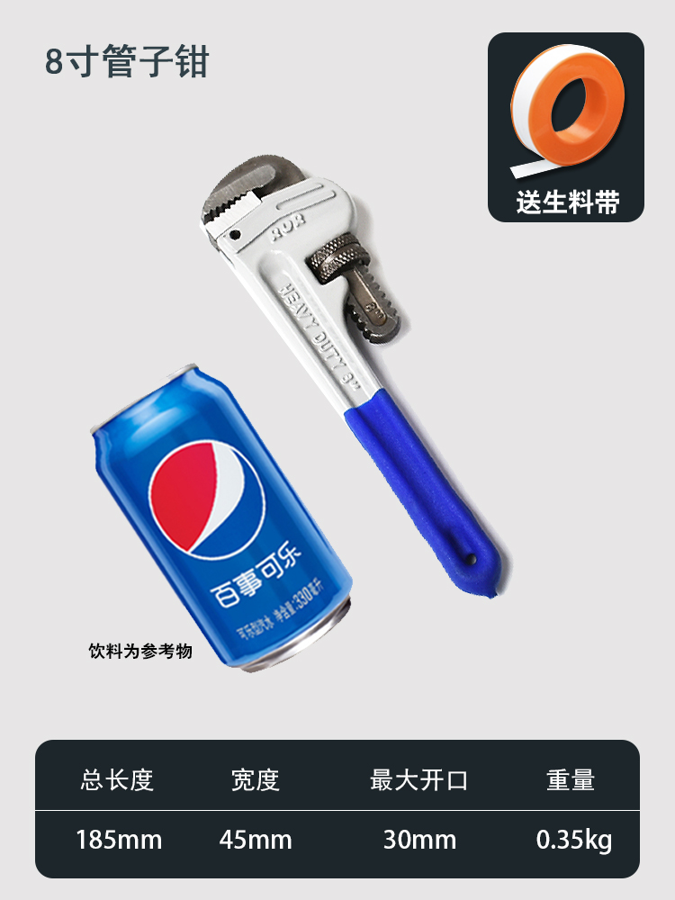 • 8inch 파이프 렌치 [개구부 30mm] 원료 벨트 포함