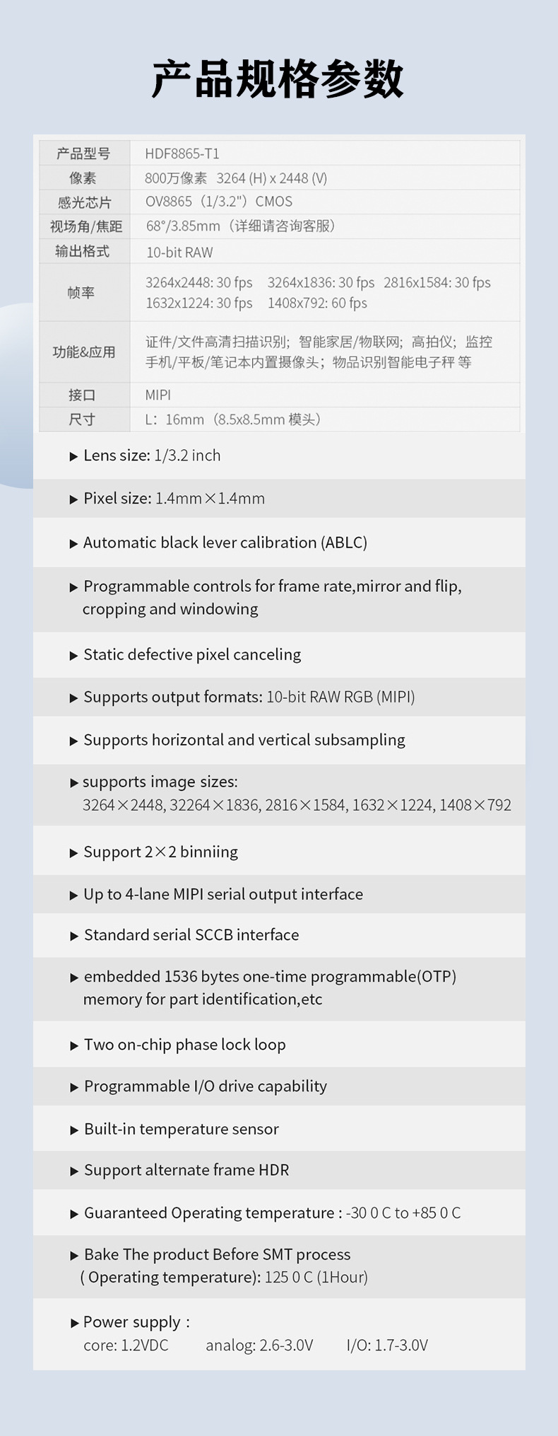 HD 8 백만 픽셀 OV8865 카메라 모듈 자동 초점 스마트 전원 모니터링 MIPI 카메라스토어 가기