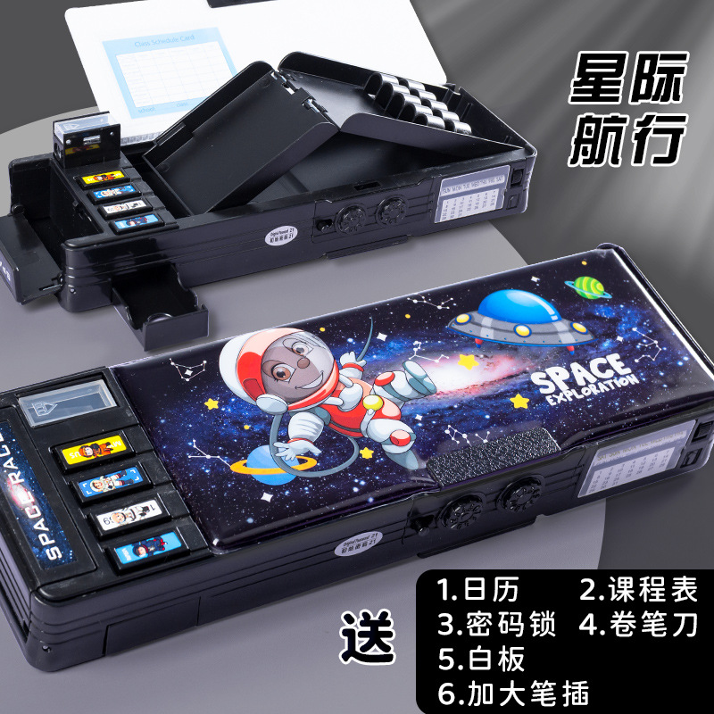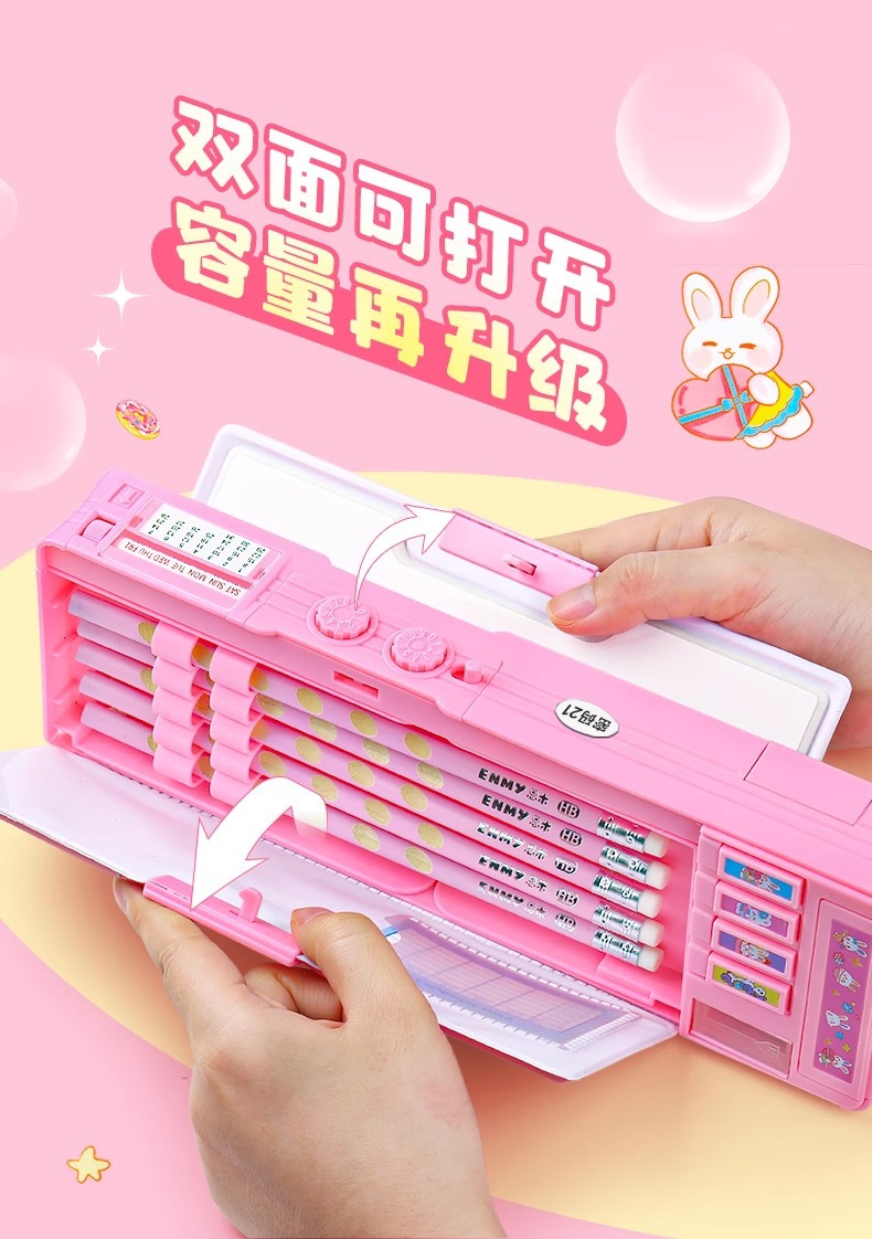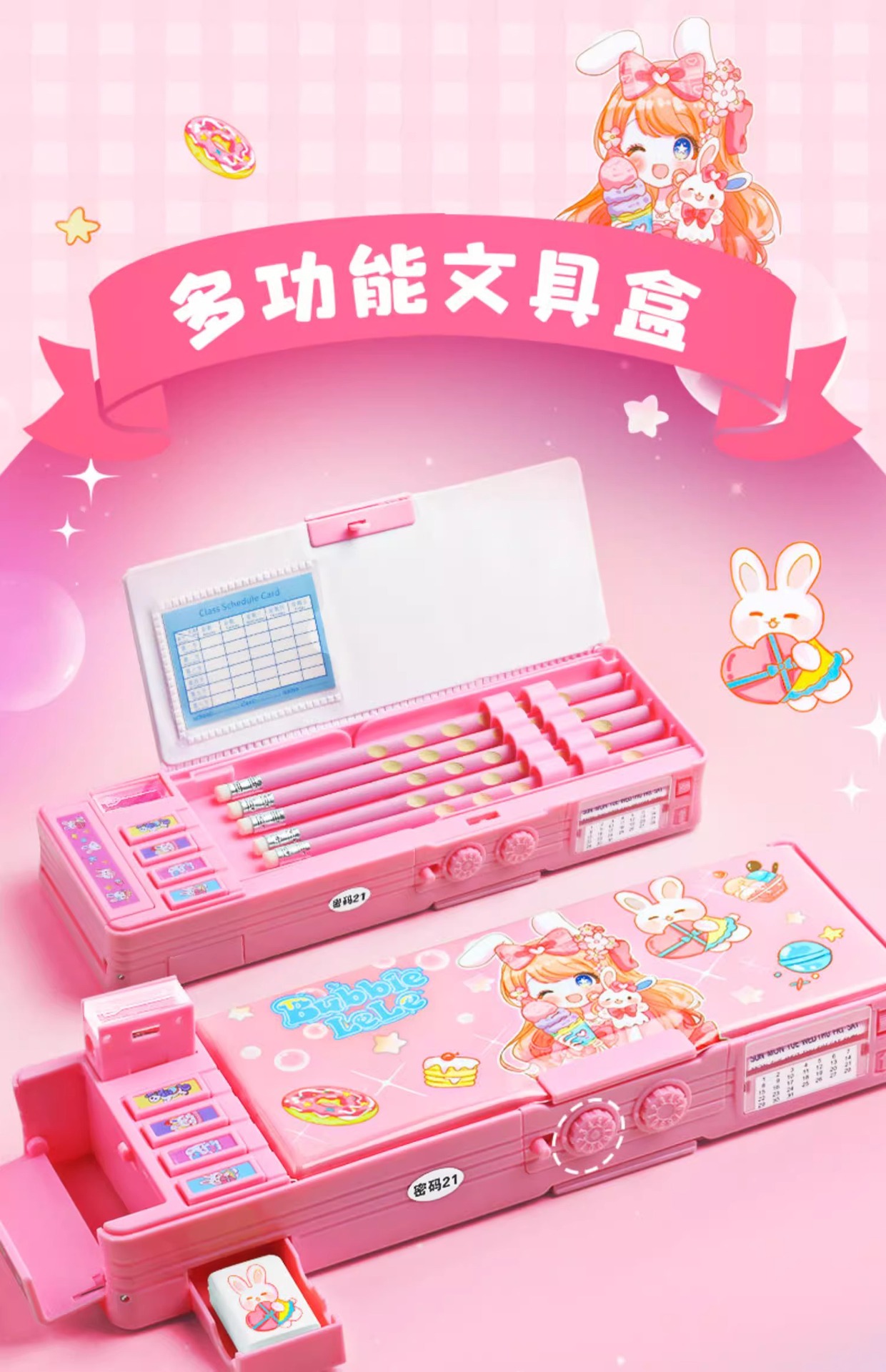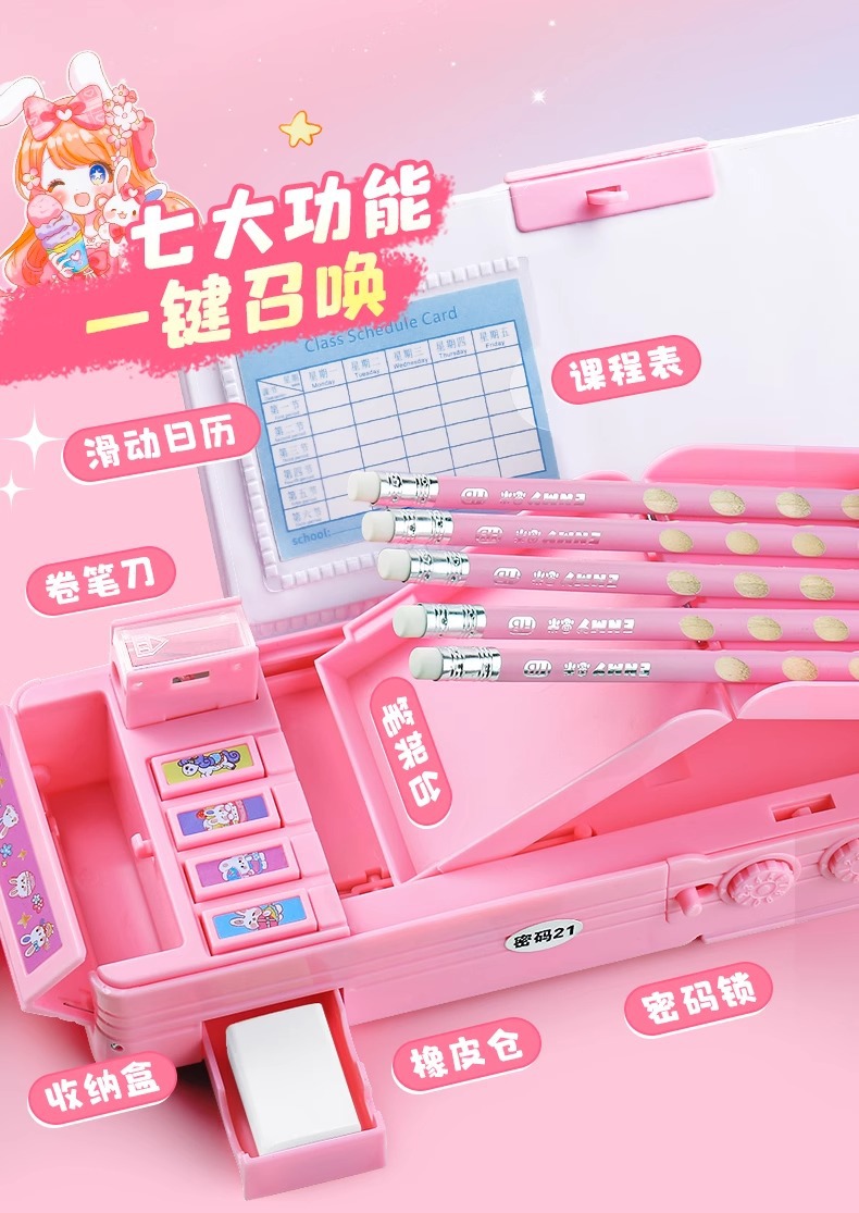 국경 간 뜨거운 판매 메커니즘 비밀번호 대형 연필 상자 다기능 편지지 상자 소녀 모델 2025 새로운 자동 연필 상자