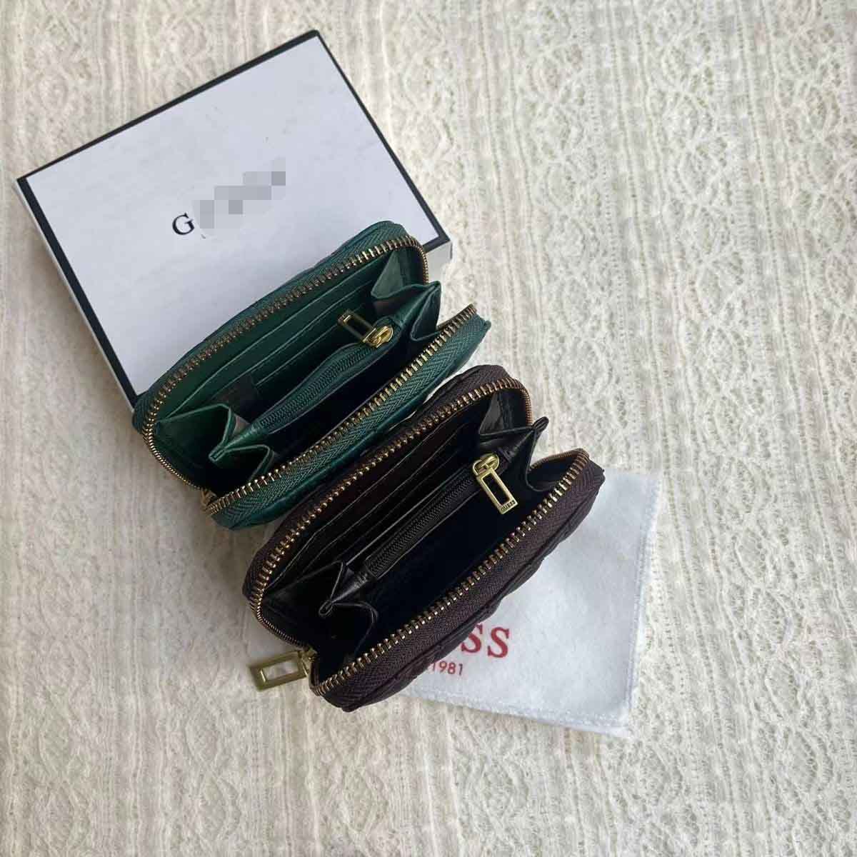 Gue 대외 무역 유럽과 미국 패션 간단한 주름 단색 자수 라인 카드 가방 지갑 ID 가방 여성 짧은 지갑스토어 가기
