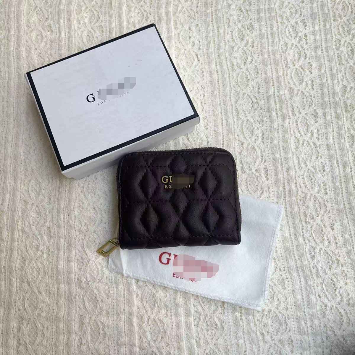 Gue 대외 무역 유럽과 미국 패션 간단한 주름 단색 자수 라인 카드 가방 지갑 ID 가방 여성 짧은 지갑