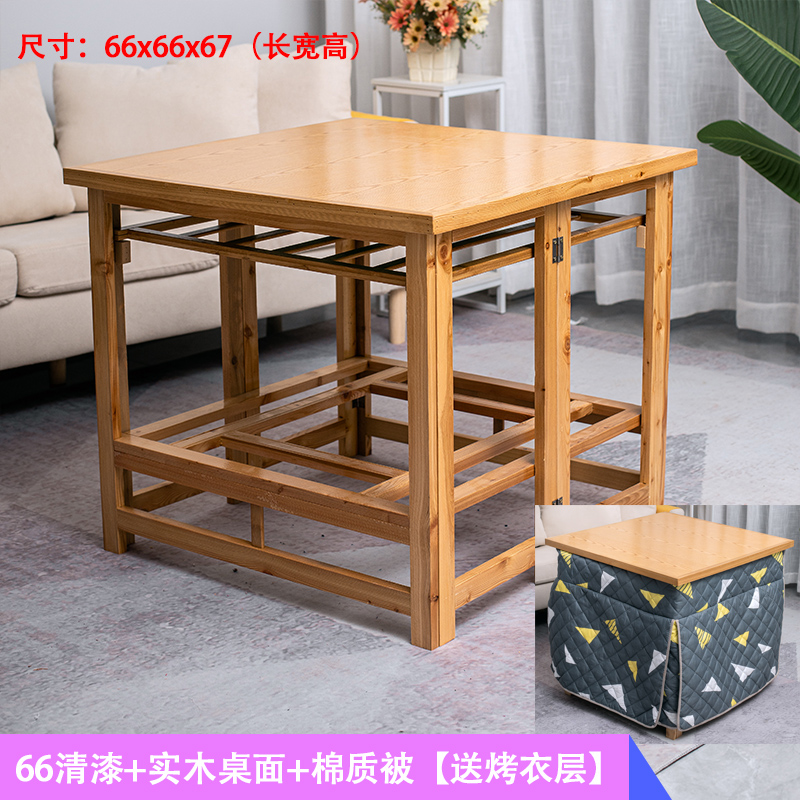 M & Fire 테이블 홈 솔리드 우드 접이식 겨울 다기능 난방 테이블 80 사이즈 스퀘어 파이어 랙