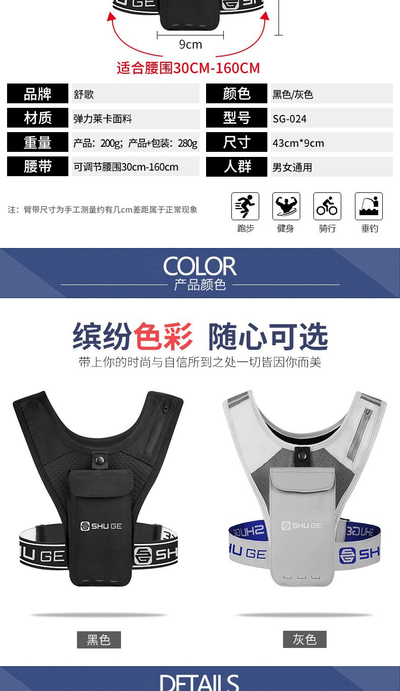 2025 새로운 경량 통기성 다이빙 소재 터치 스크린 휴대 전화 조끼 가방 남성과 여성 마라톤 달리기 특수 스포츠 가방스토어 가기