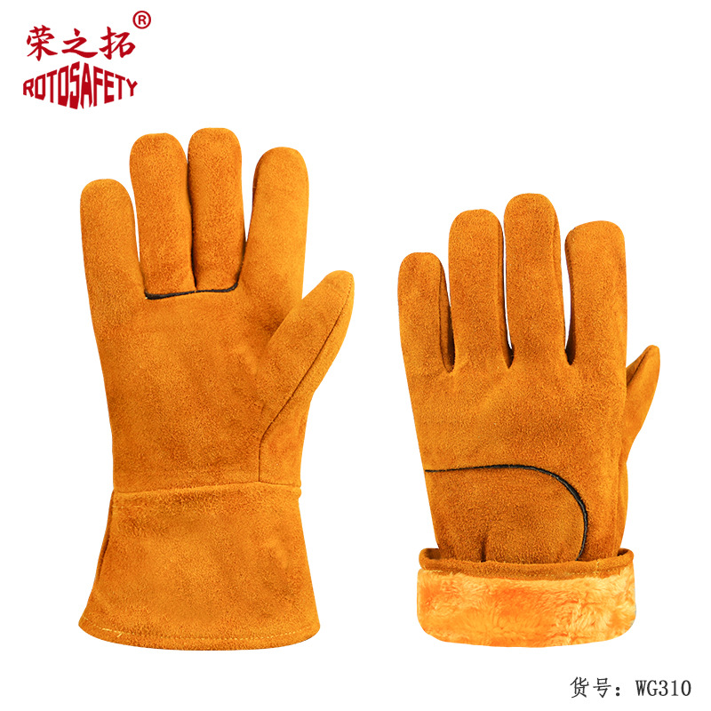 겨울 소 가죽 용접 따뜻한 장갑 기모 방한 고온 내화 꽃 용접기 연삭 기계 유지 보수 및 취급