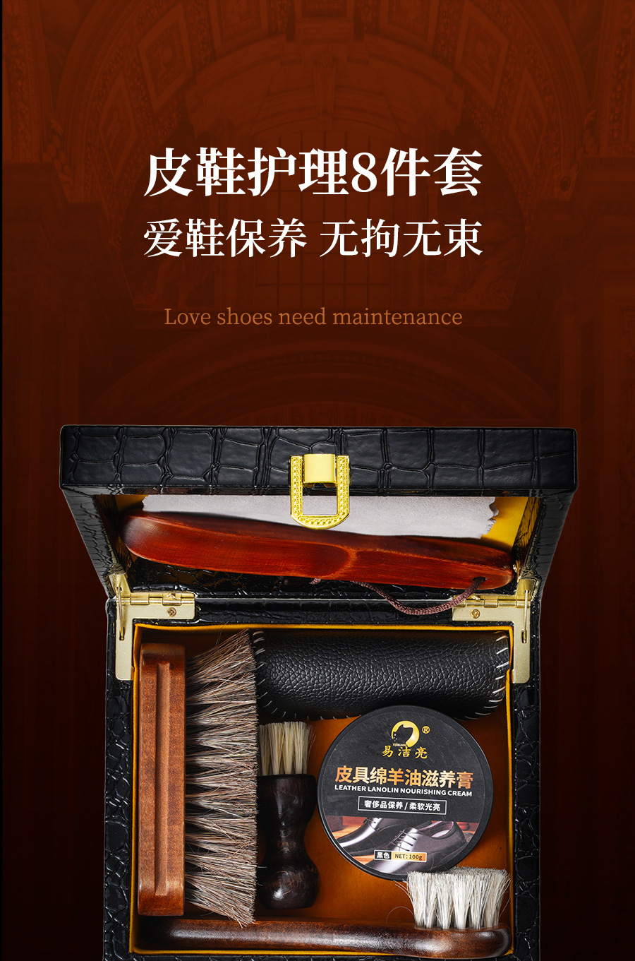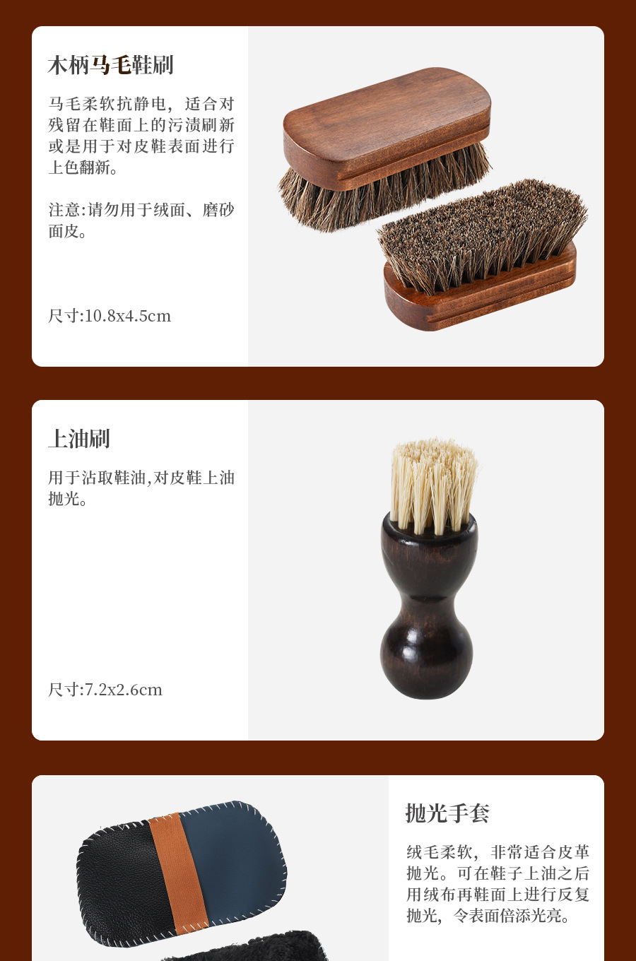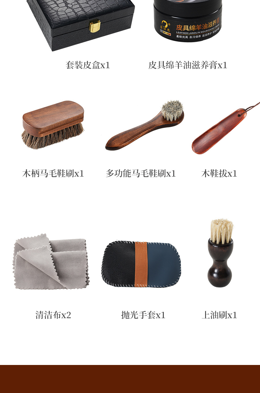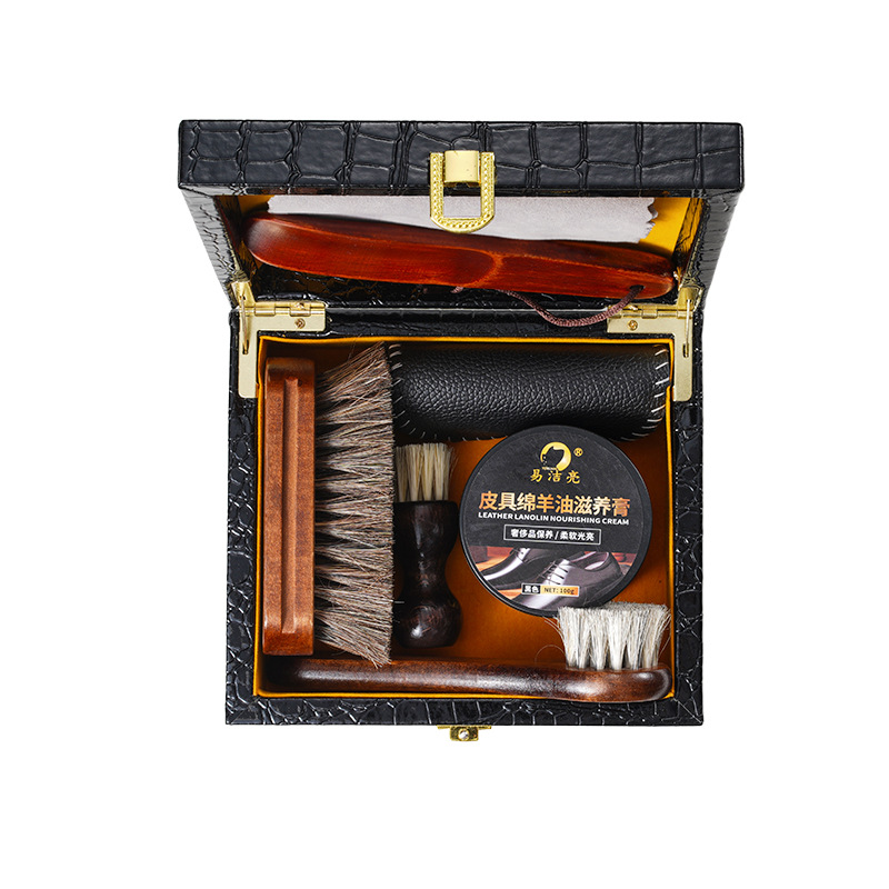 검은 가죽 신발 광택 조각 청소 및 유지 보수 8 헤어 브러시 연마 가죽 도구 세트 신발 브러시 말 관리 양 오일