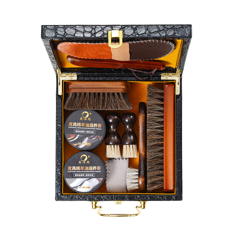 검은 가죽 신발 광택 조각 청소 및 유지 보수 8 헤어 브러시 연마 가죽 도구 세트 신발 브러시 말 관리 양 오일스토어 가기
