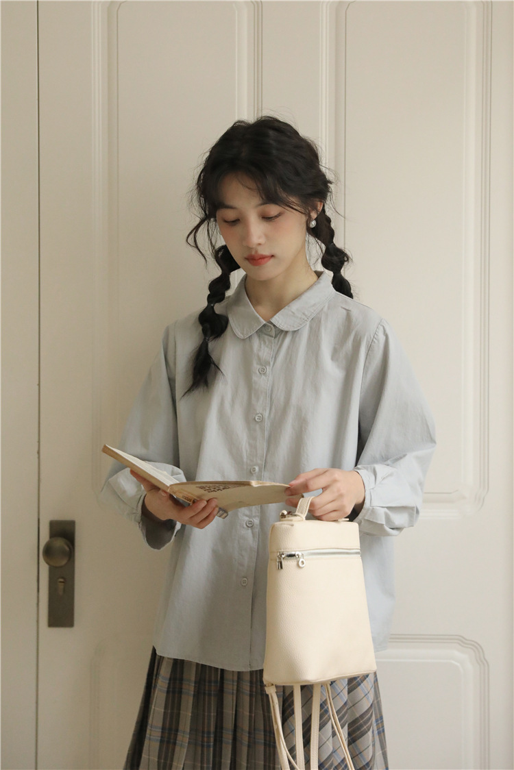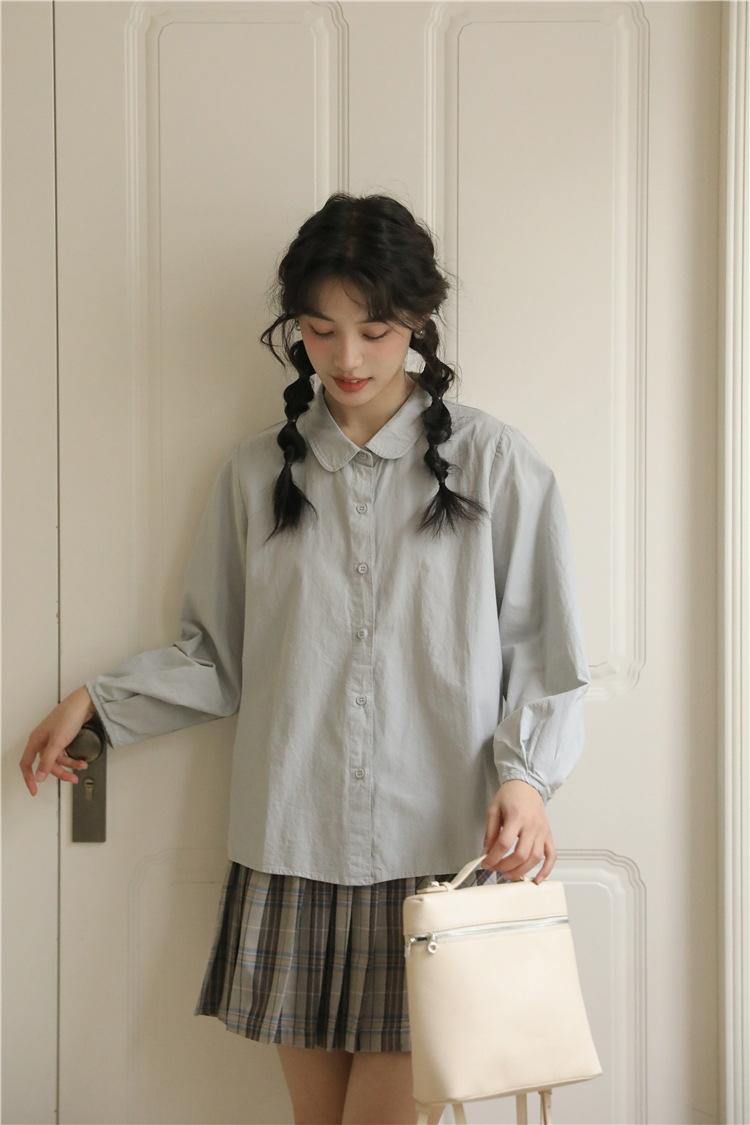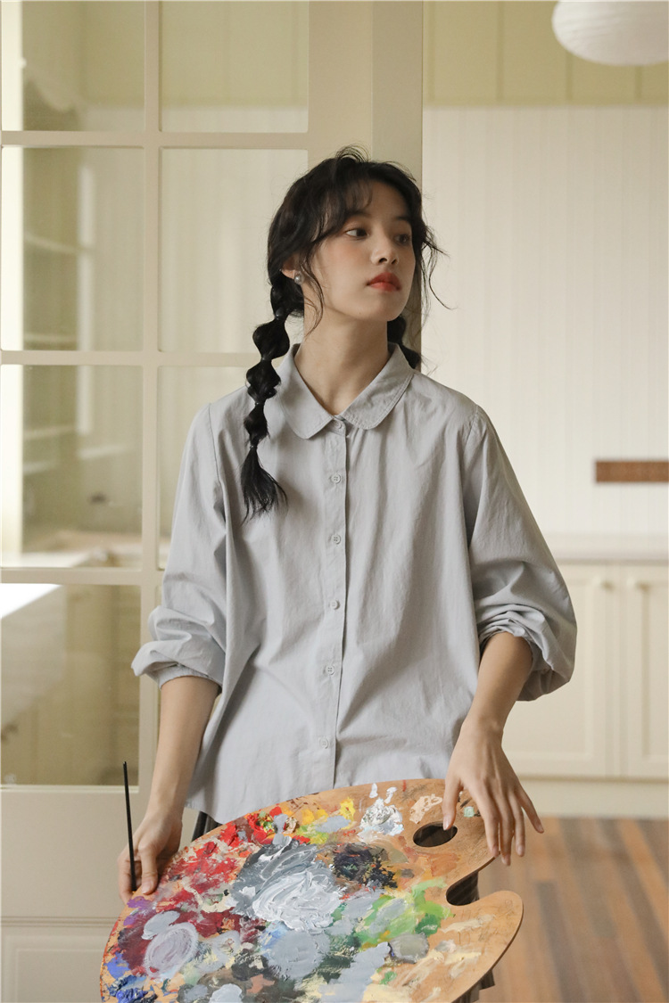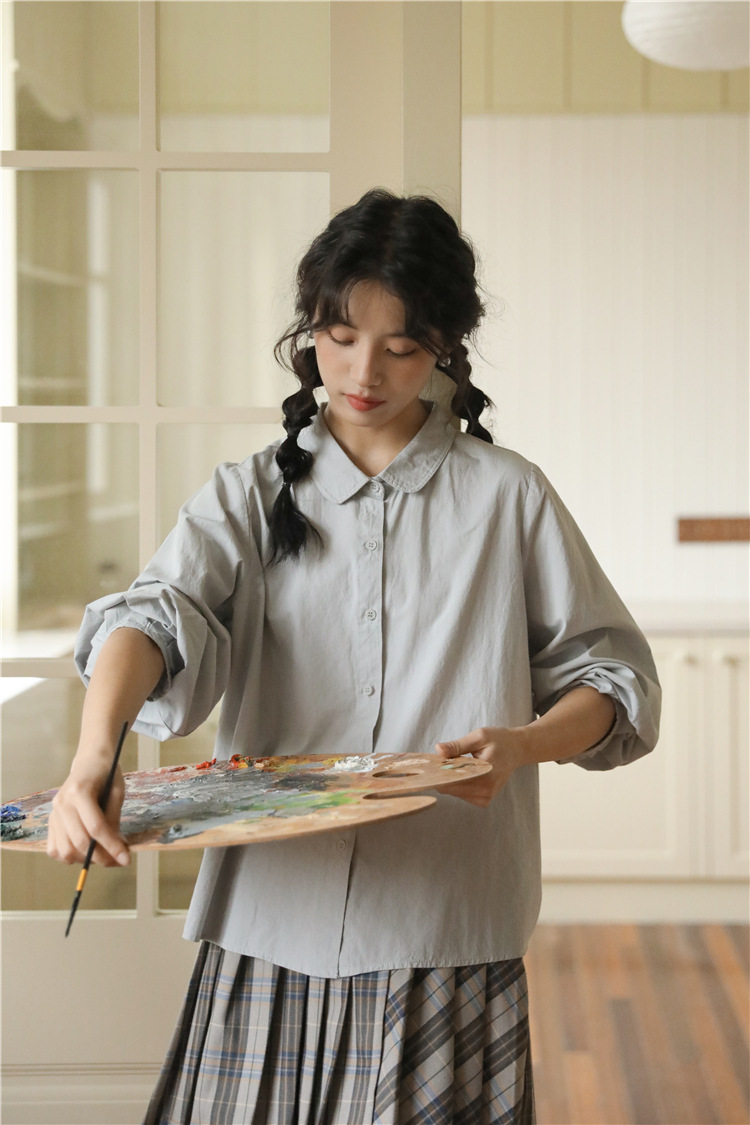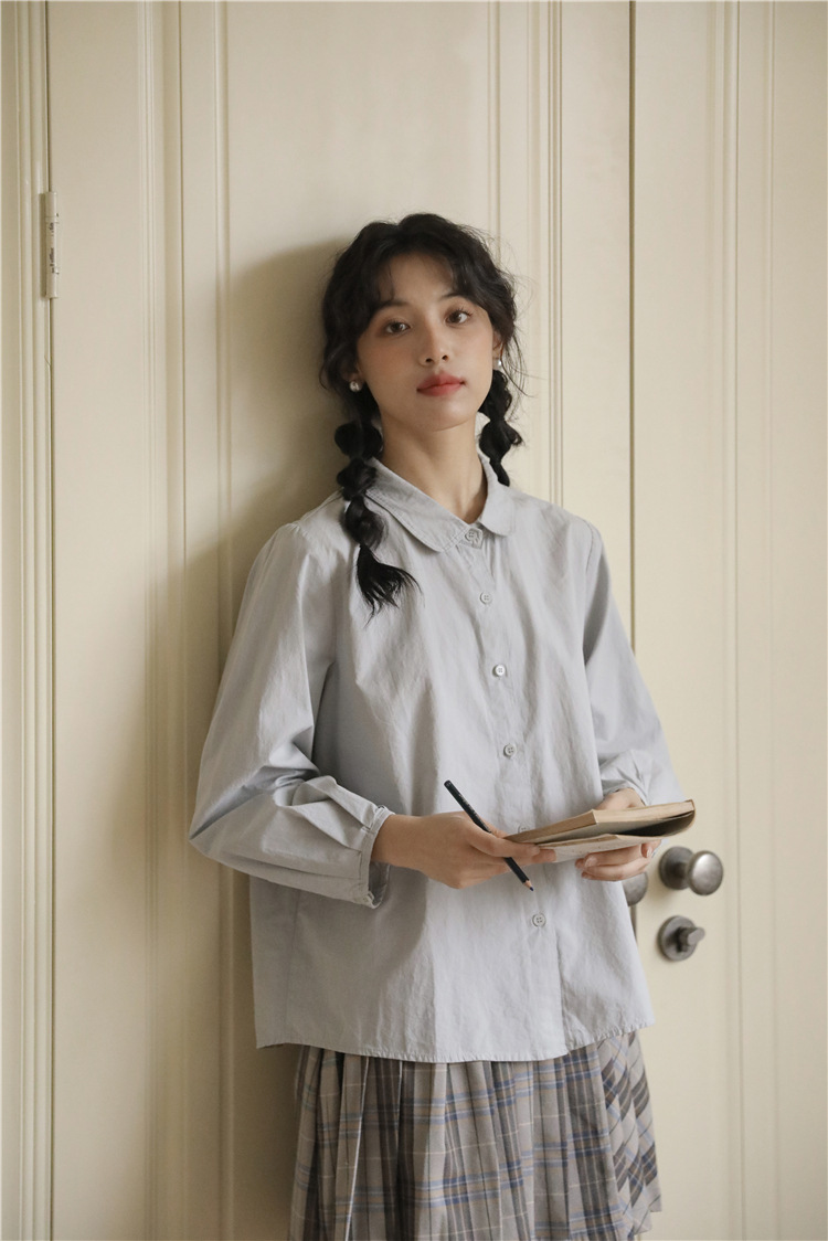 2025 봄 새로운 일본 스타일 심플한면과 린넨 디자인 센스 작은 옷깃 느슨한 퍼프 소매 긴 소매 셔츠 여성용 셔츠