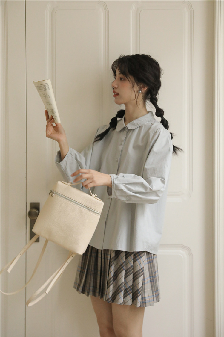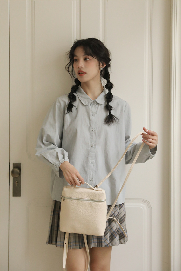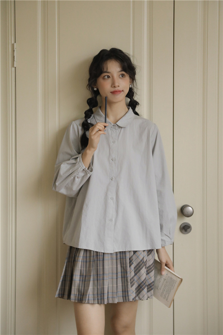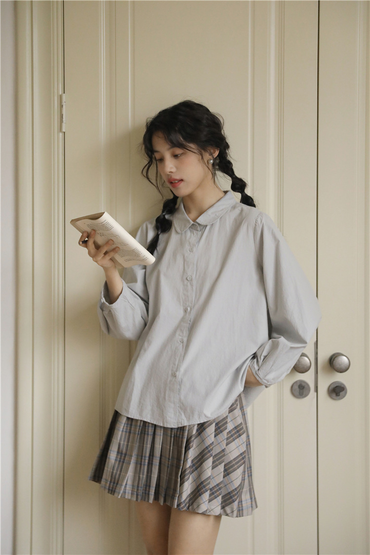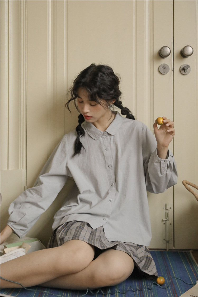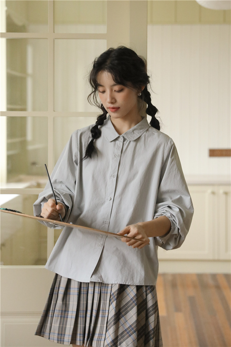 2025 봄 새로운 일본 스타일 심플한면과 린넨 디자인 센스 작은 옷깃 느슨한 퍼프 소매 긴 소매 셔츠 여성용 셔츠