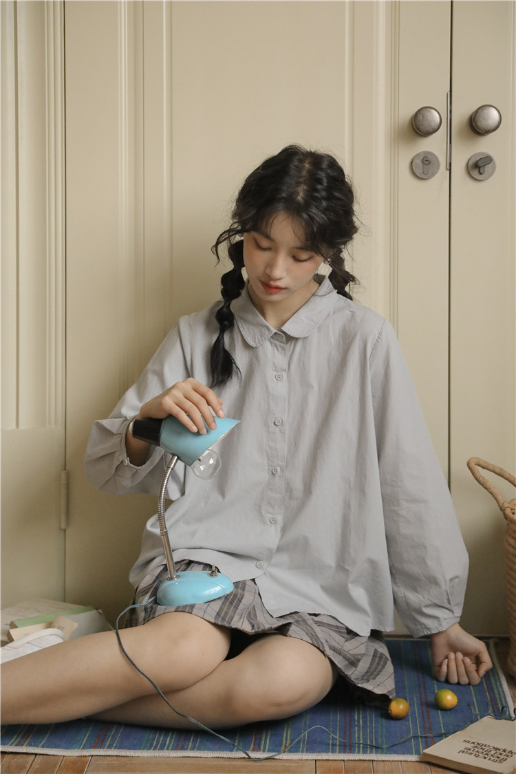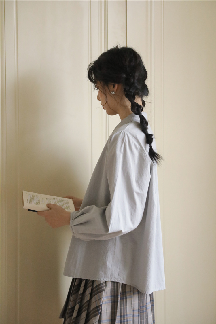 2025 봄 새로운 일본 스타일 심플한면과 린넨 디자인 센스 작은 옷깃 느슨한 퍼프 소매 긴 소매 셔츠 여성용 셔츠스토어 가기