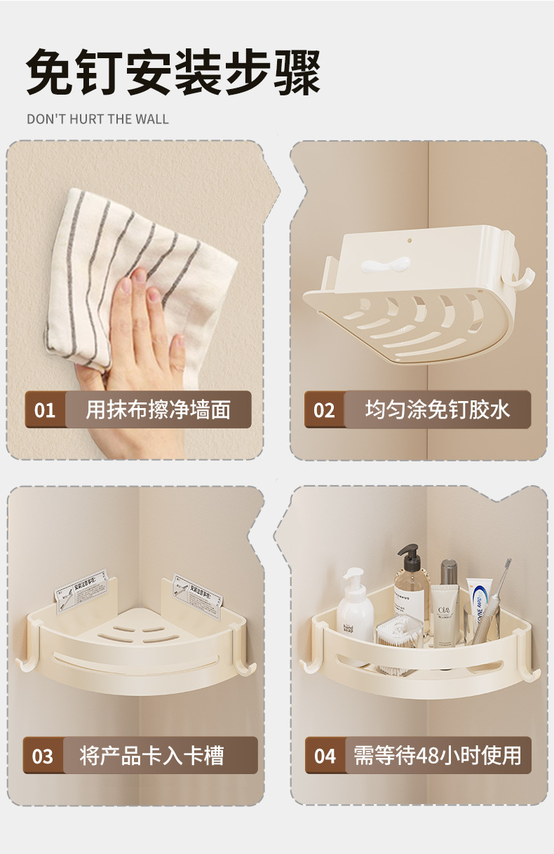 크림 스타일 욕실 삼각형 랙 화장실 비 천공 공간 알루미늄 코너 코너 바구니 삼각대 화장실 보관스토어 가기