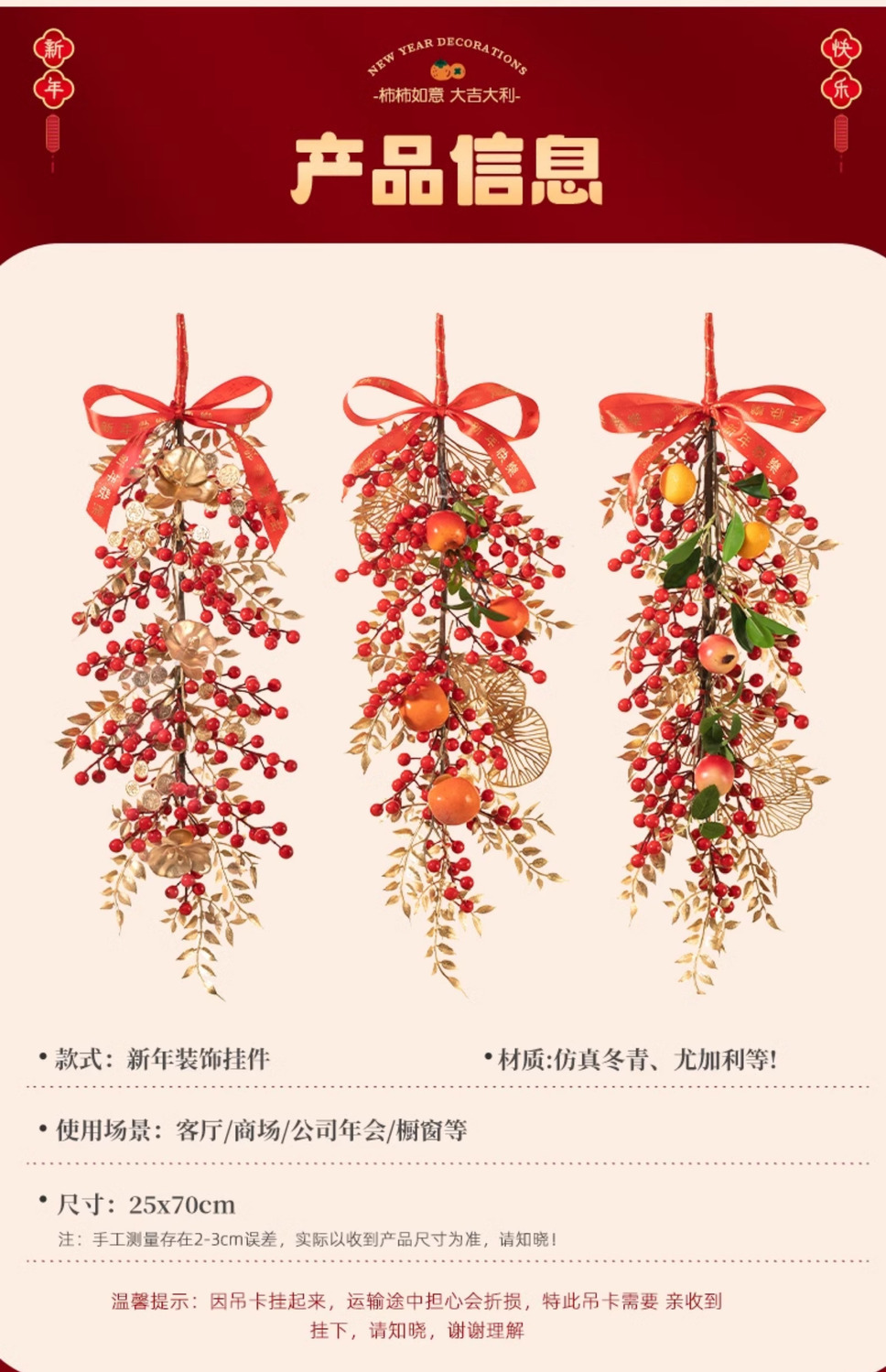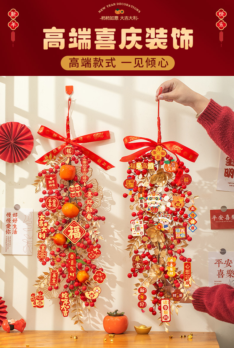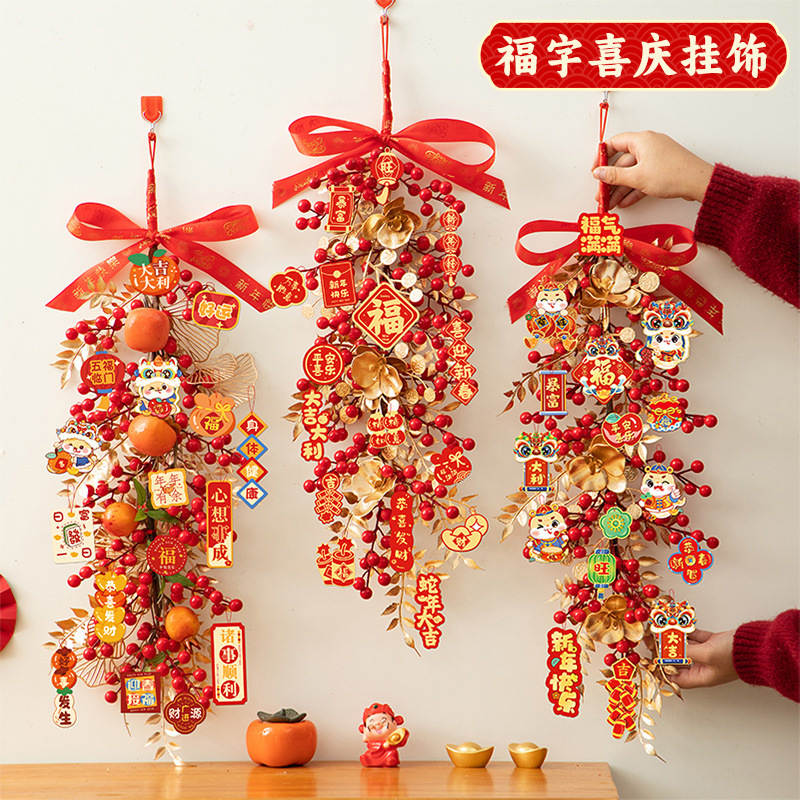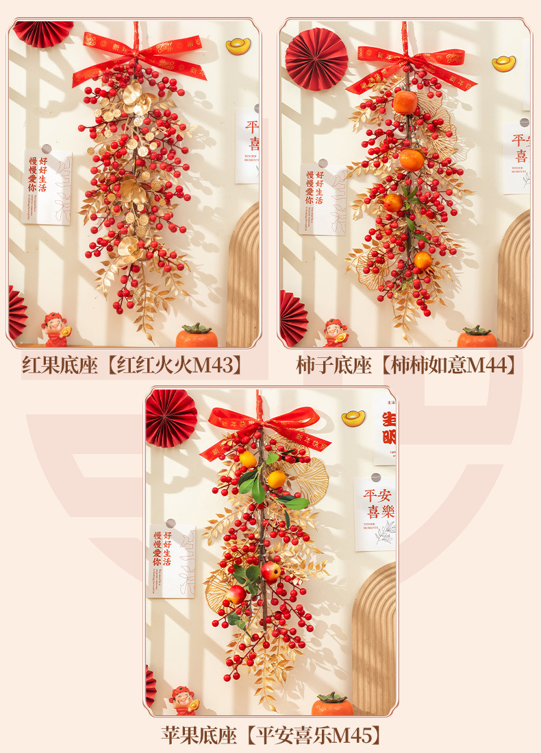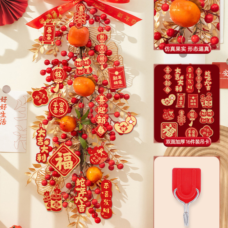새해 분위기 장식 벽 매달려 인공 꽃 포춘 과일 펜던트 벽 붉은 과일 가짜 꽃 집들이 봄 축제 매달려