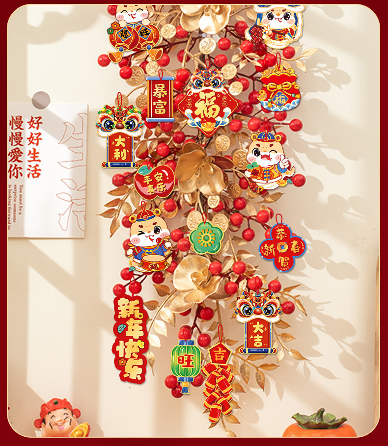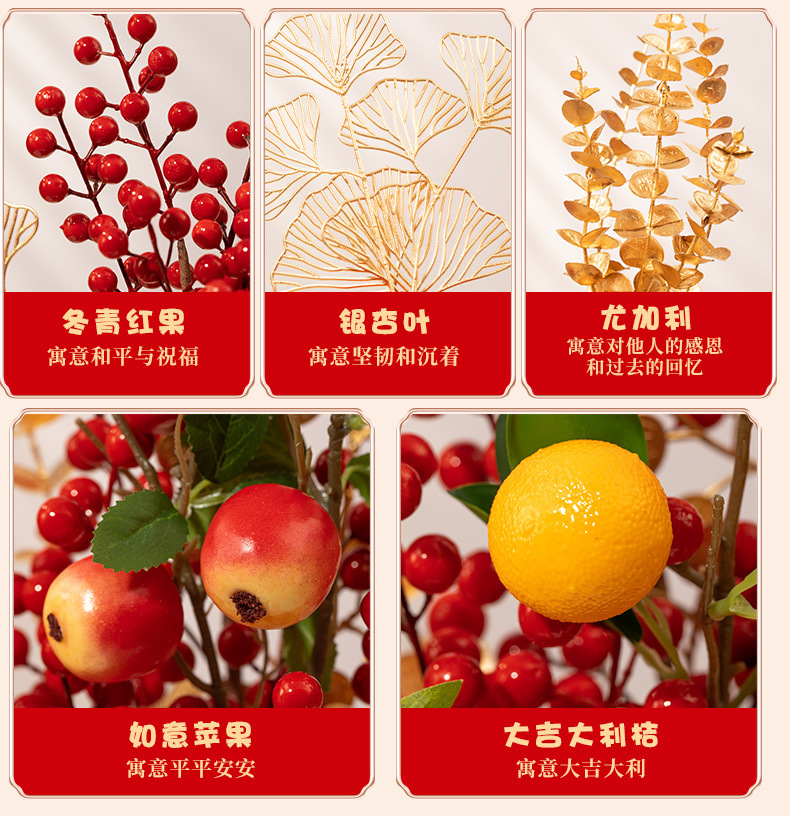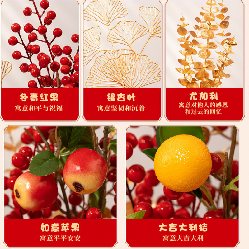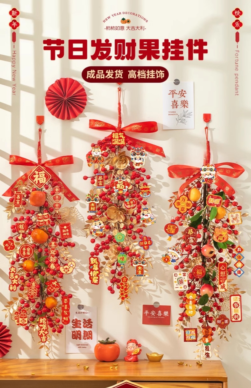 새해 분위기 장식 벽 매달려 인공 꽃 포춘 과일 펜던트 벽 붉은 과일 가짜 꽃 집들이 봄 축제 매달려
