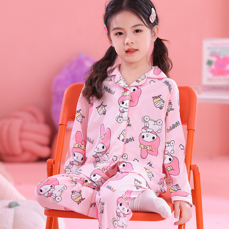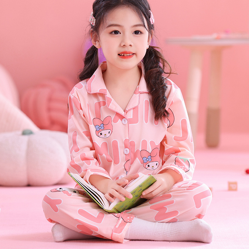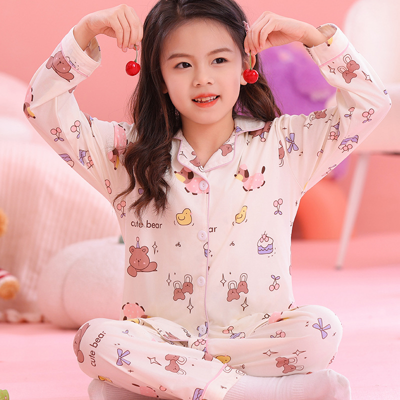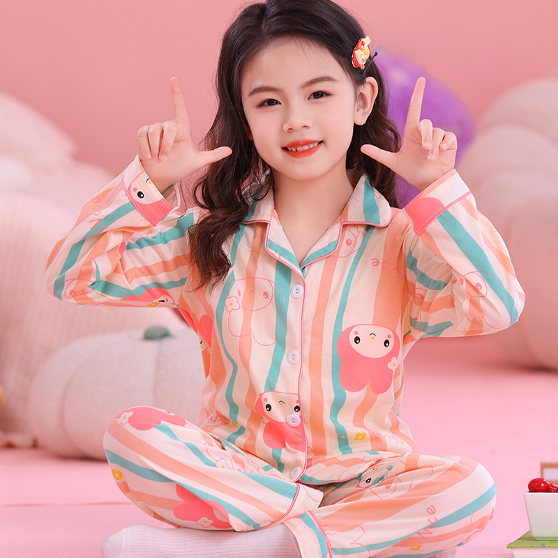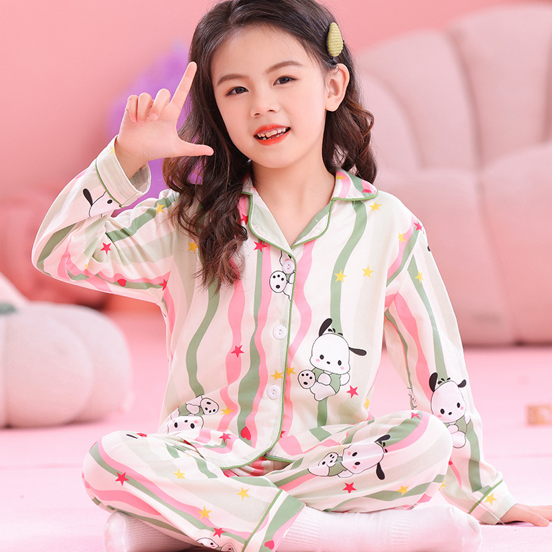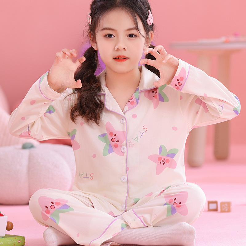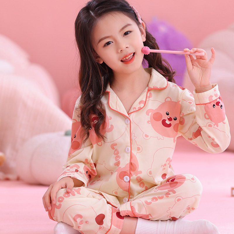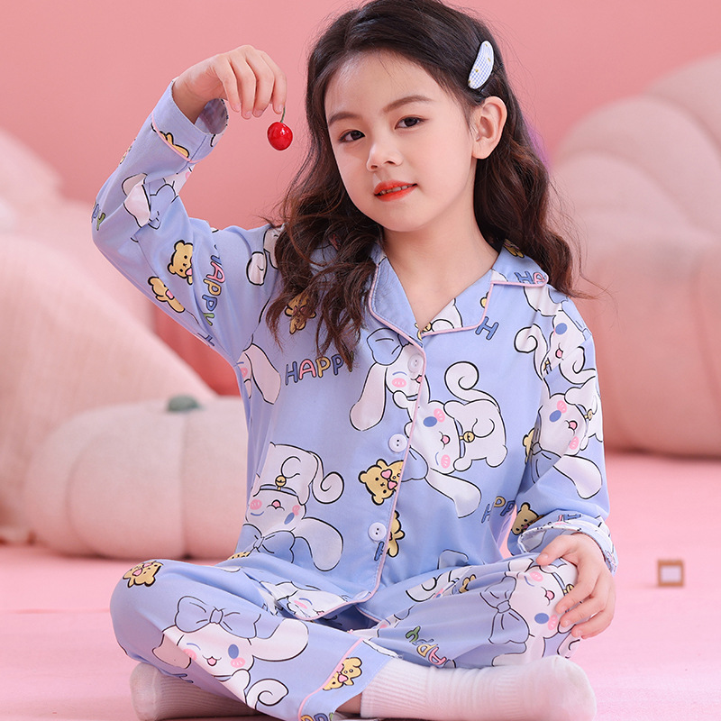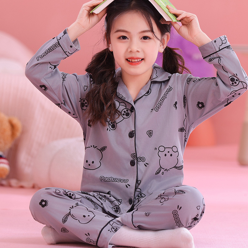 새로운 소녀 어린이 잠옷 봄과 가을 긴 소매 면화 같은 소녀 공주 중 큰 어린이 가정 옷 세트