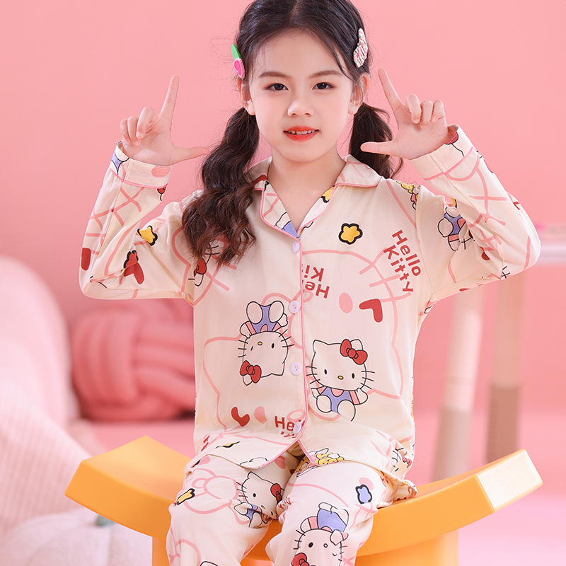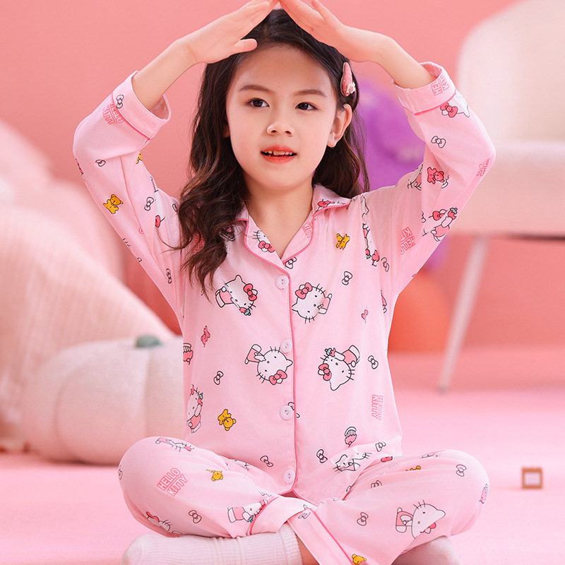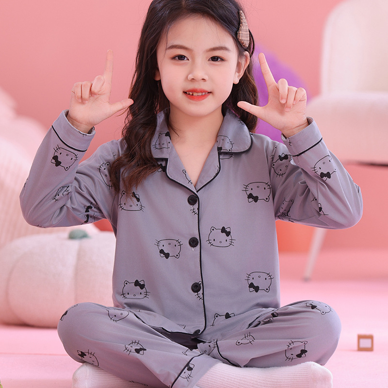 새로운 소녀 어린이 잠옷 봄과 가을 긴 소매 면화 같은 소녀 공주 중 큰 어린이 가정 옷 세트스토어 가기