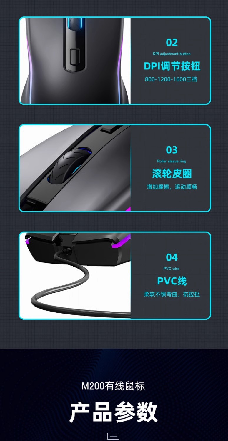 M160/M260/M150/M200 발광 USB 유선 마우스 컴퓨터 사무실 비즈니스 홈 게임 마우스스토어 가기
