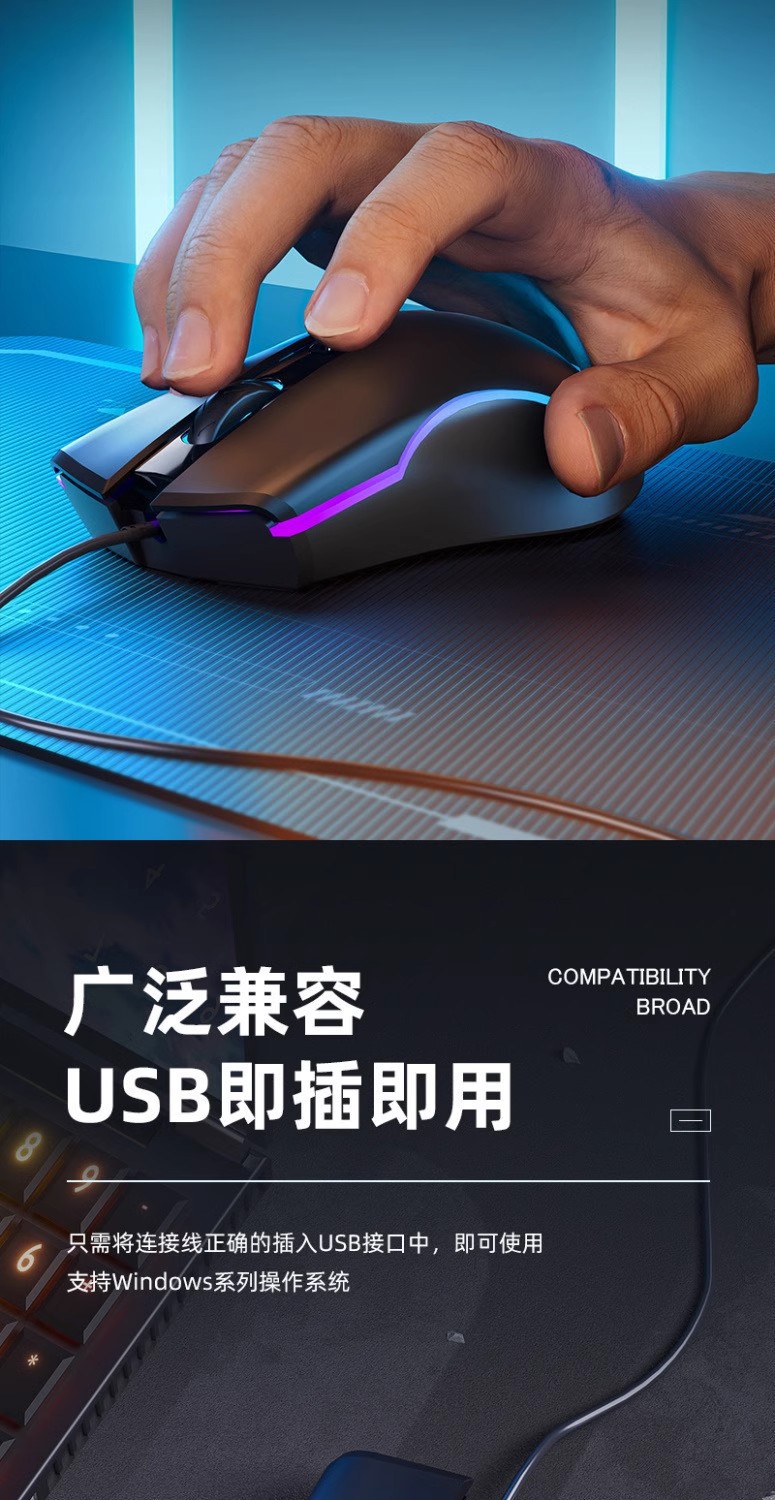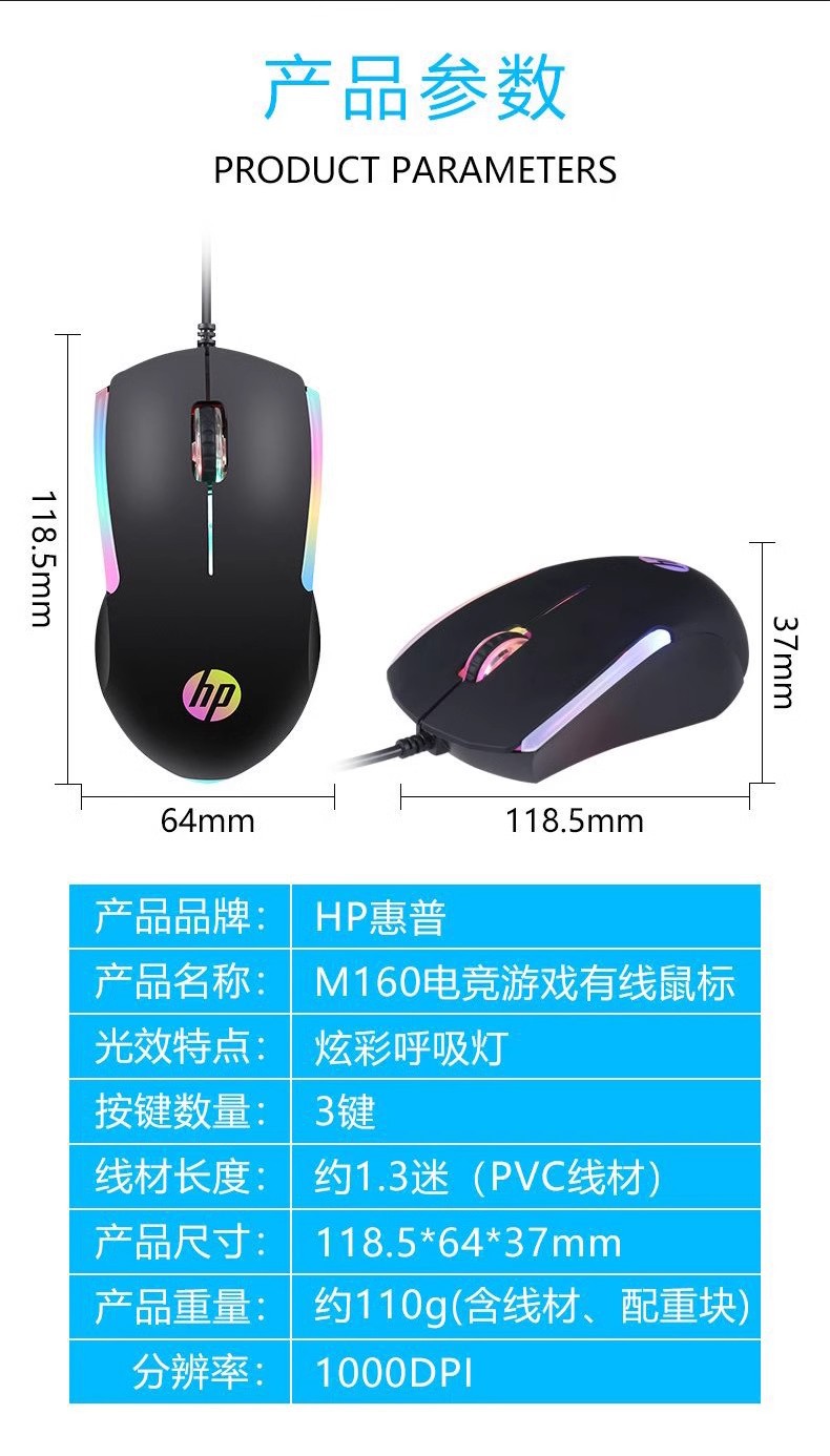 M160/M260/M150/M200 발광 USB 유선 마우스 컴퓨터 사무실 비즈니스 홈 게임 마우스