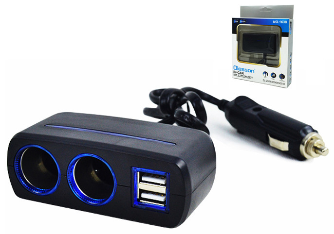 车载一拖二快充厂家热销 新款车载一分二点烟器 汽车双USB充电器