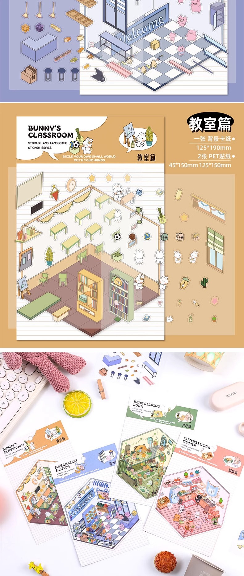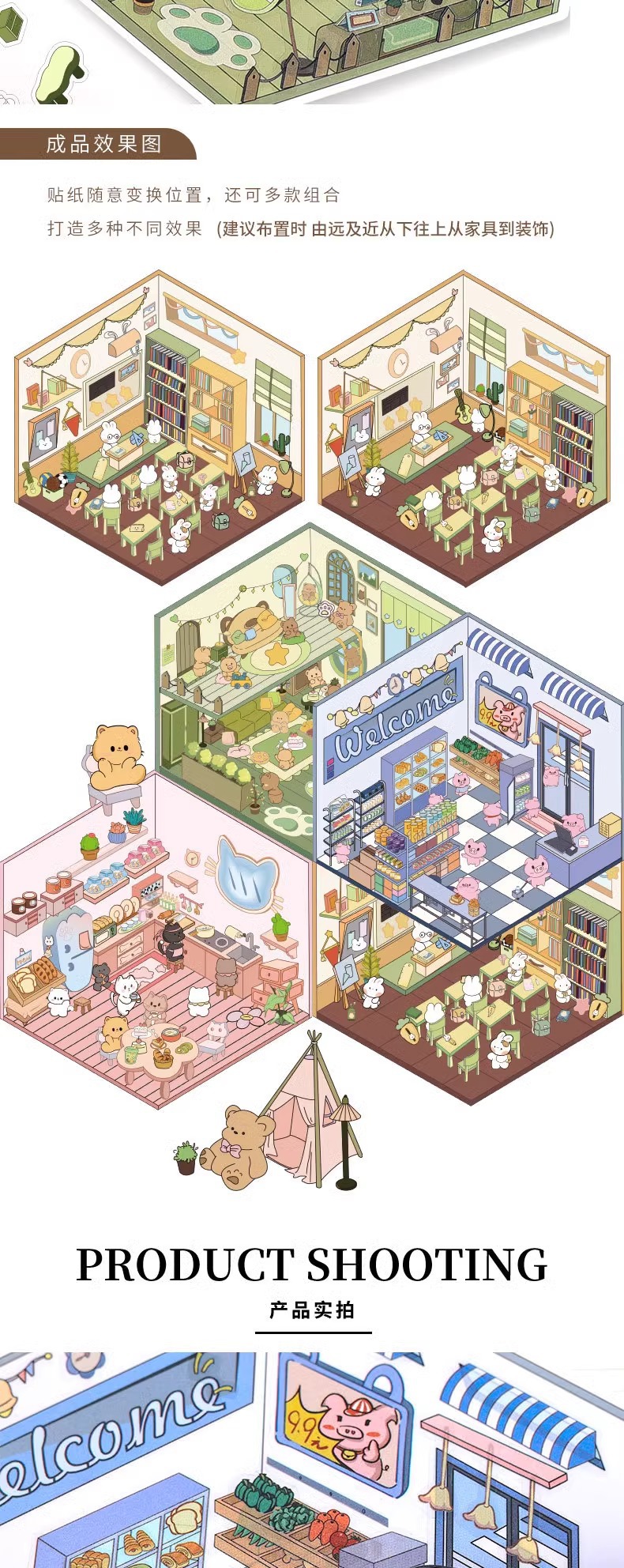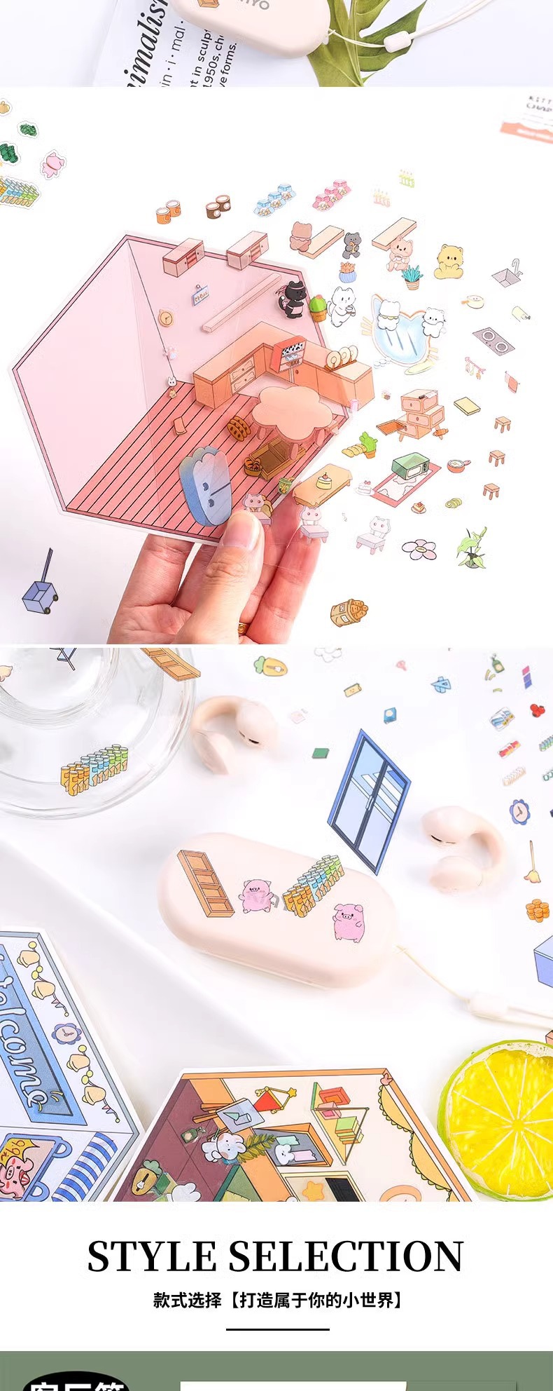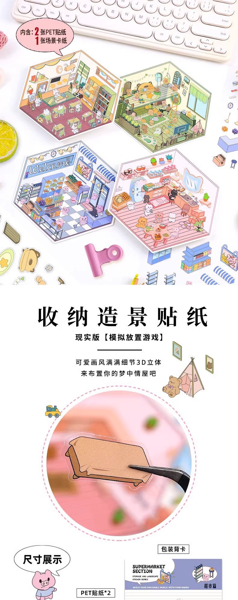 3D 조경 스티커 새로운 언어 레저 2.0 시리즈 스티커 3 차원 절단 무료 수동 감압 DIY 소형 3 차원 집스토어 가기