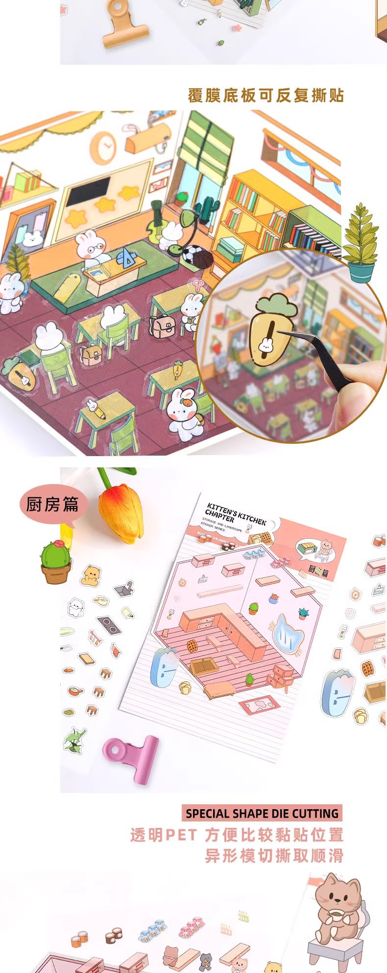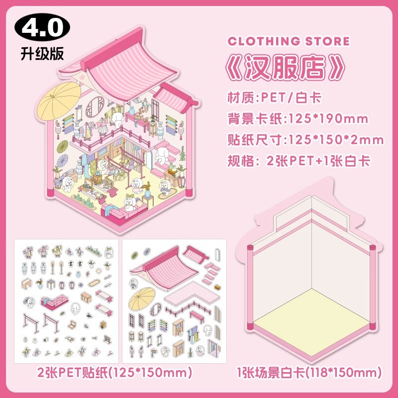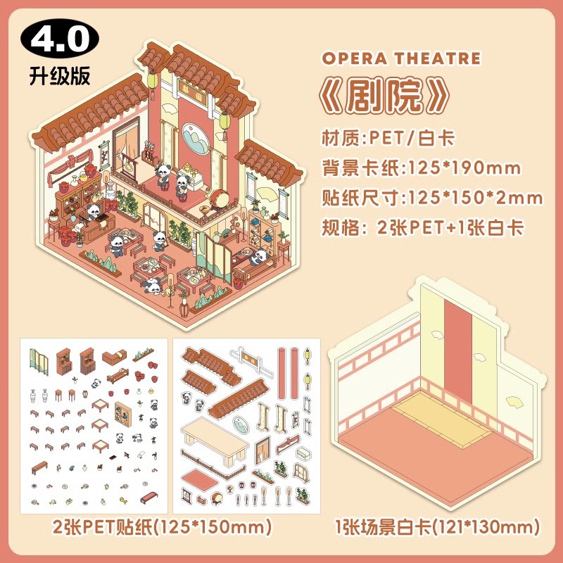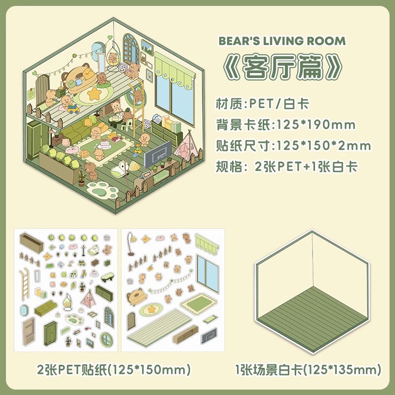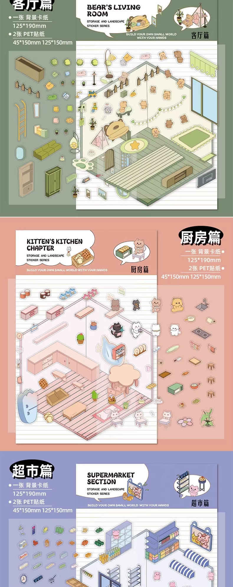 3D 조경 스티커 새로운 언어 레저 2.0 시리즈 스티커 3 차원 절단 무료 수동 감압 DIY 소형 3 차원 집스토어 가기