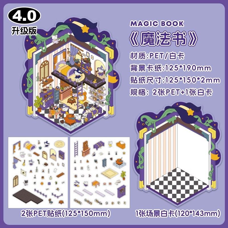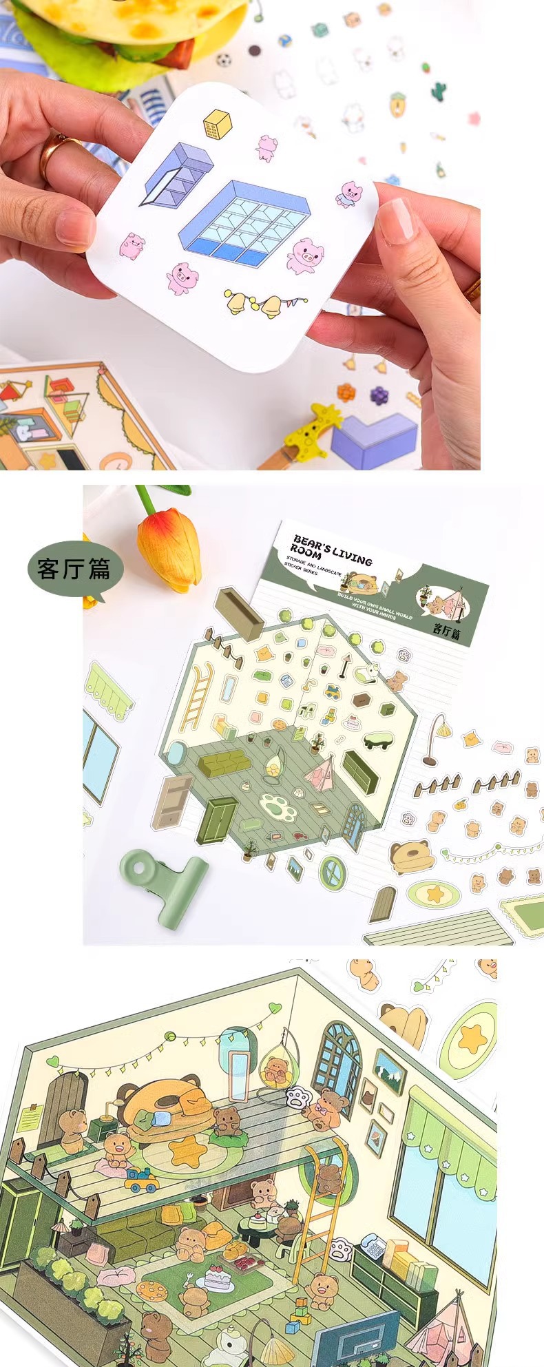 3D 조경 스티커 새로운 언어 레저 2.0 시리즈 스티커 3 차원 절단 무료 수동 감압 DIY 소형 3 차원 집