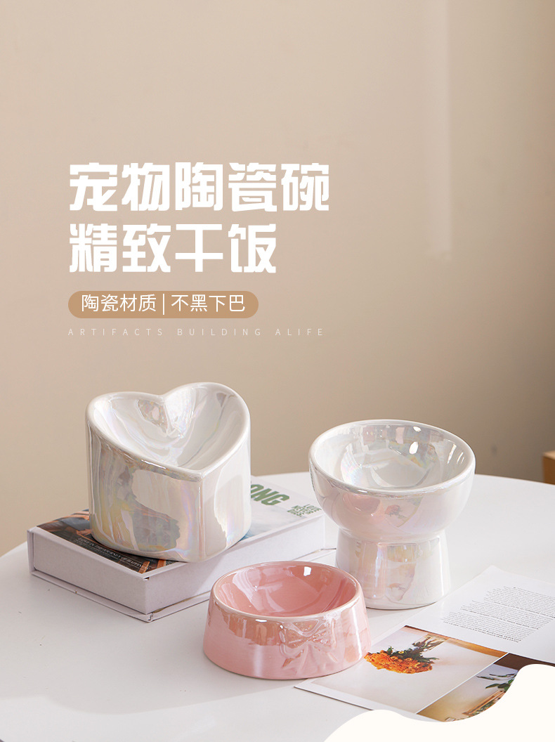 국경 전기 도금 새끼 고양이 밥 그릇 세라믹 애완 동물 식기 핑크 흰 고양이 그릇 개 그릇 귀여운 사용자 정의스토어 가기