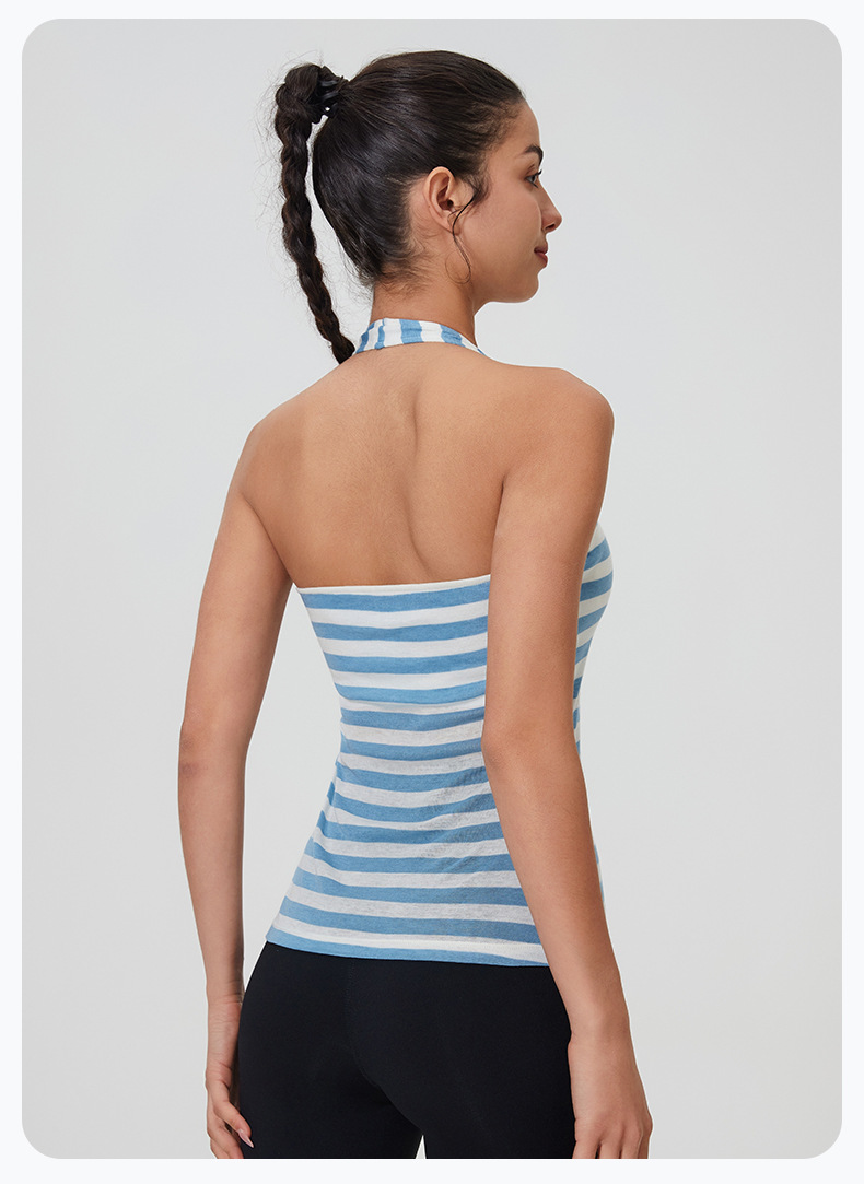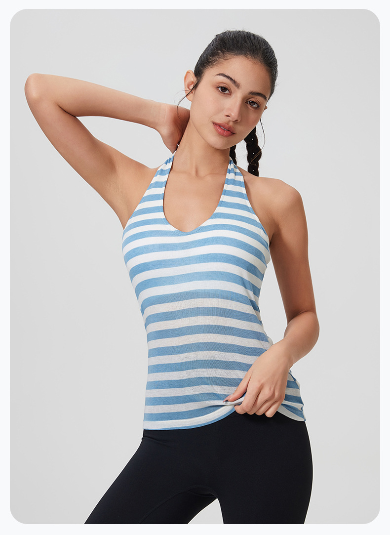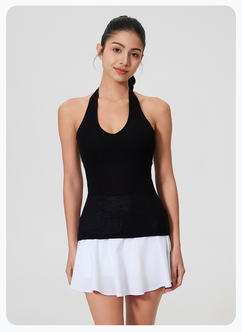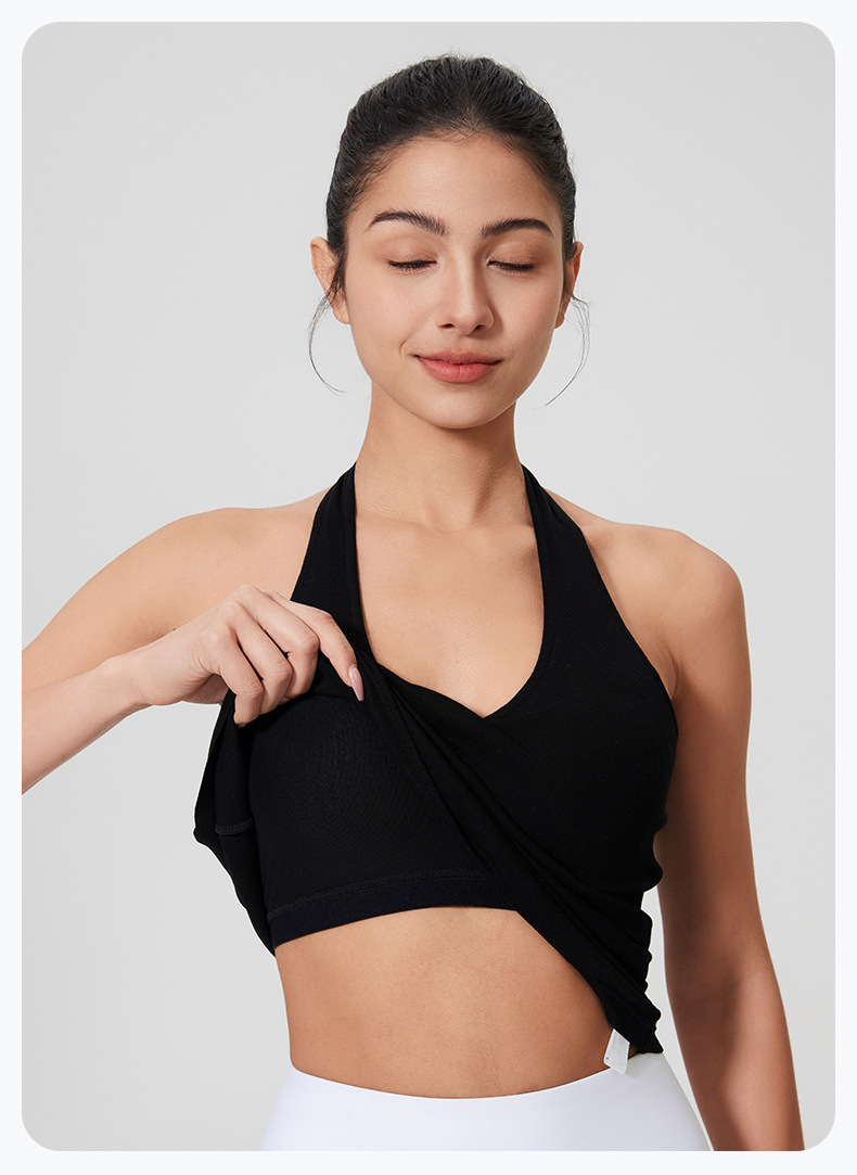 2025 봄과 여름 U 넥 홀터넥 넥 울 패딩 조끼 여성용 대형 백리스 피트니스 요가 탑 리오셀 요가웨어