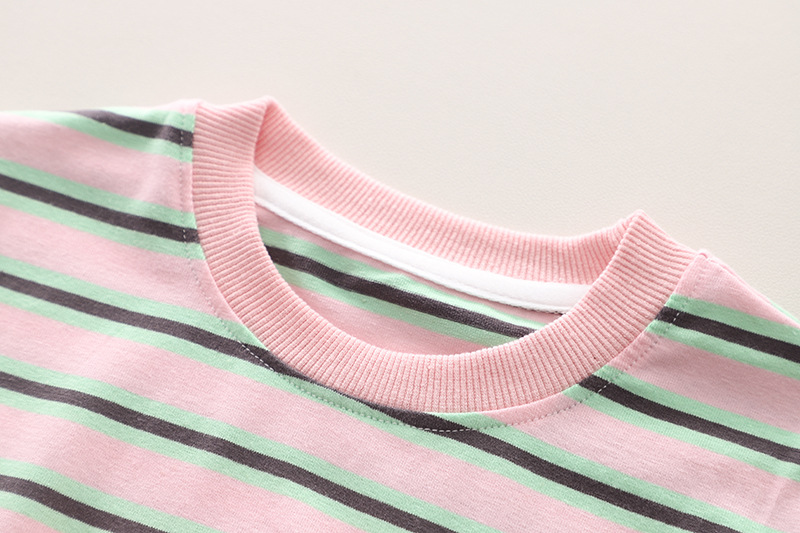 2025 새로운 여름 소년 여름 세트 아기 어린이 서양식 줄무늬 만화 가방 짧은 소매 투피스 세트스토어 가기