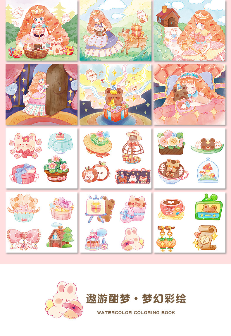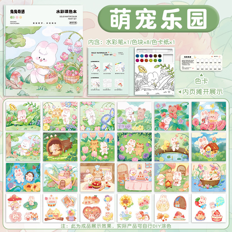 어린이 수채화 색칠 노트 북 창조적 인 만화 퍼즐 조용한 책은 낙서 색칠을 그리기 위해 페인트와 함께 온다스토어 가기