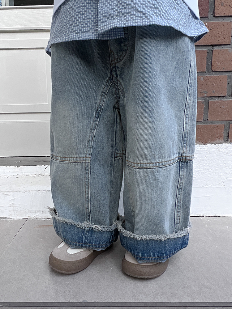 어린이 스트레이트 다리 바지 봄과 가을 새로운 2025 아기의 독특한 넓은 다리 청바지 한국 쿨 잘 생긴 남자와 어린이 바지스토어 가기