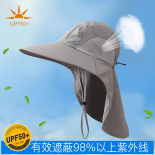 防紫外线遮阳帽男士夏季户外防晒帽大檐太阳渔夫帽遮脸护颈钓鱼帽