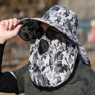 夏季男士防晒迷彩披肩帽户外登山钓鱼帽采茶帽女遮脸面罩防紫外线