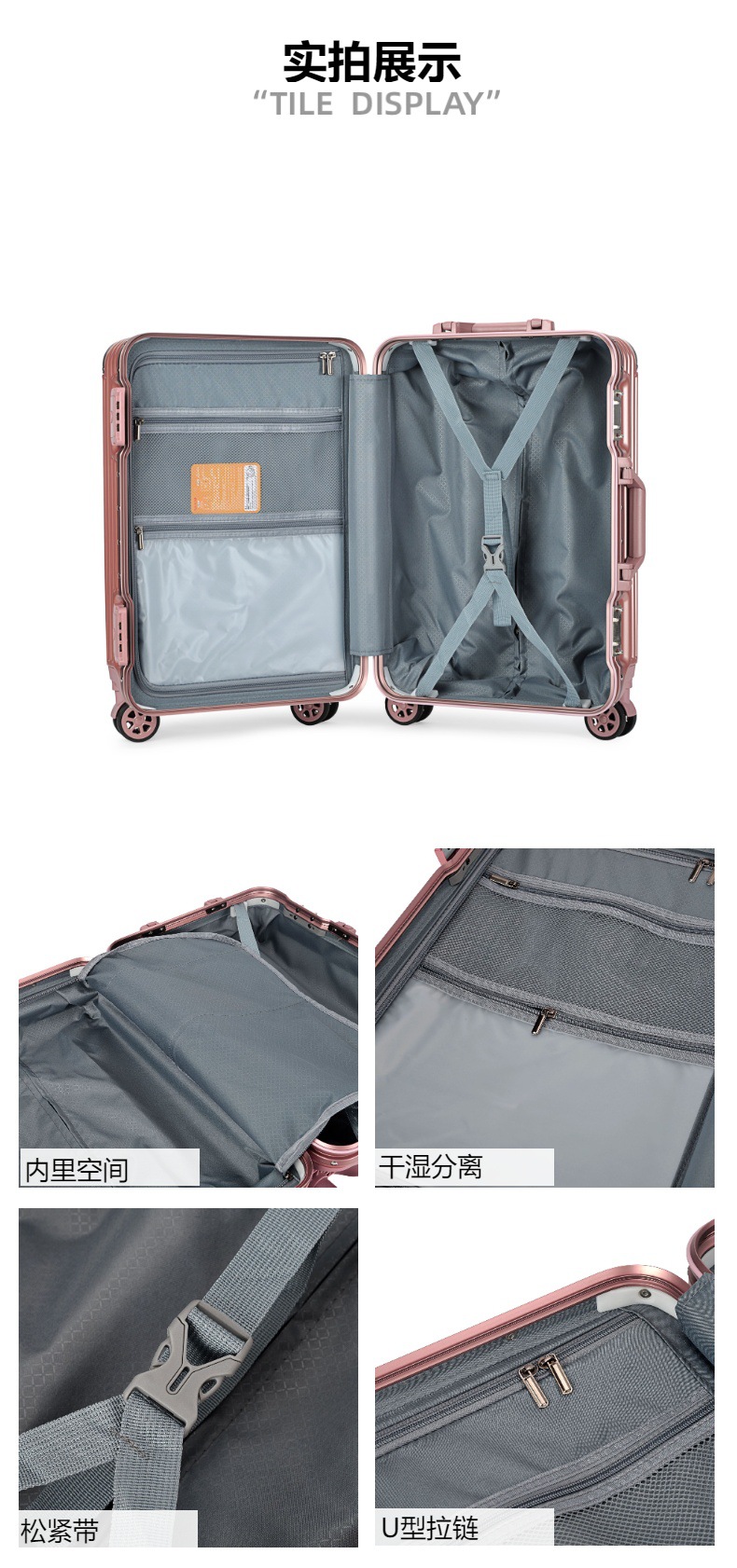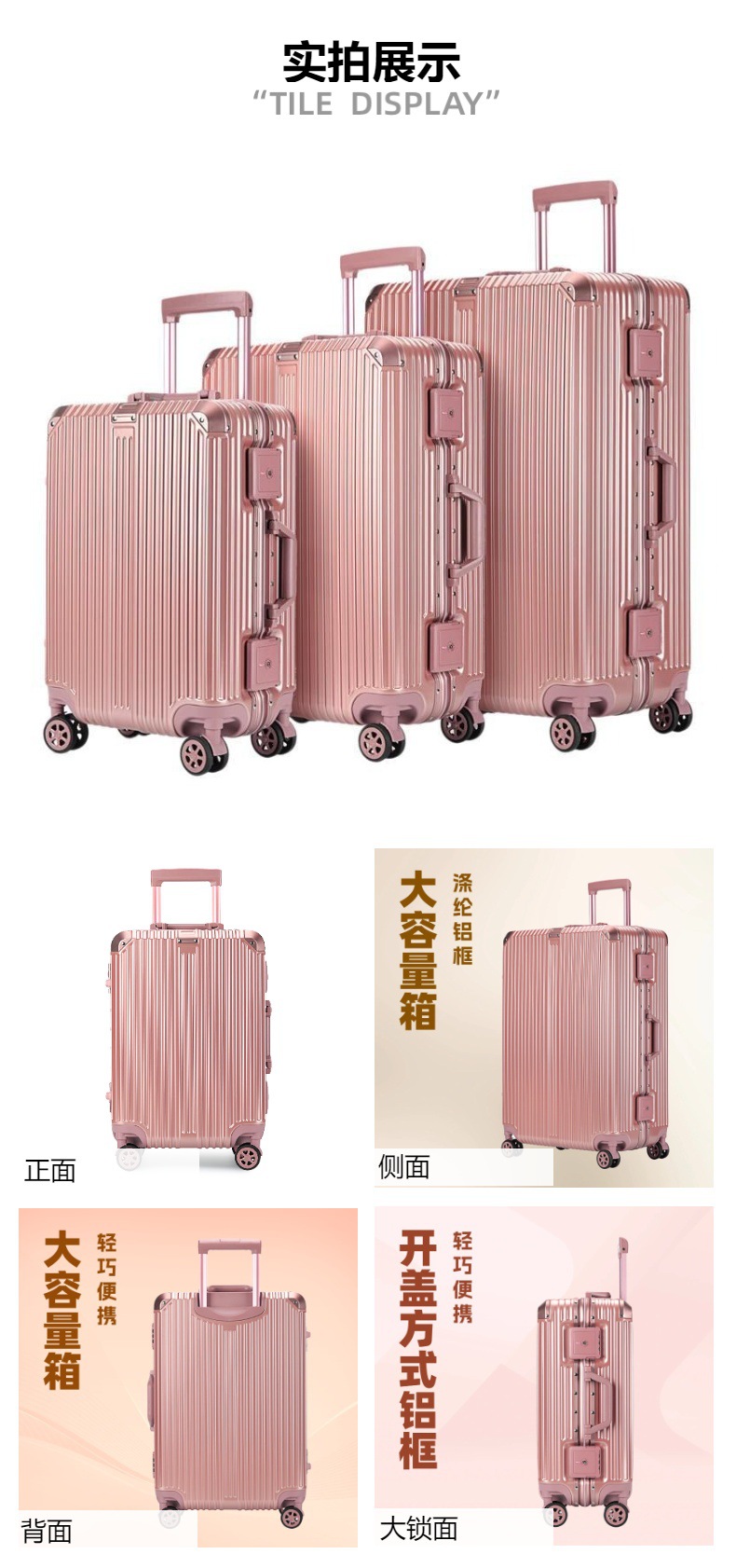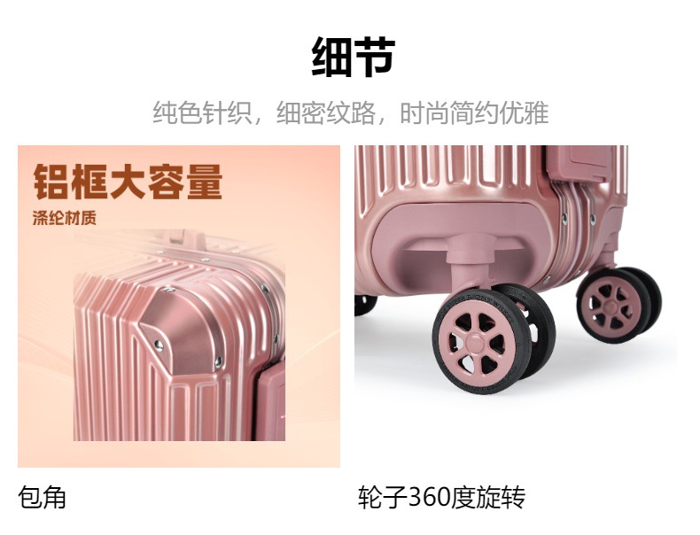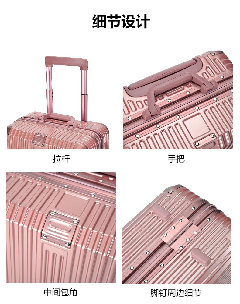 PC 수하물 2024 새로운 알루미늄 프레임 상자 유니버설 휠 수하물 대용량 암호 상자 탑승 가능스토어 가기