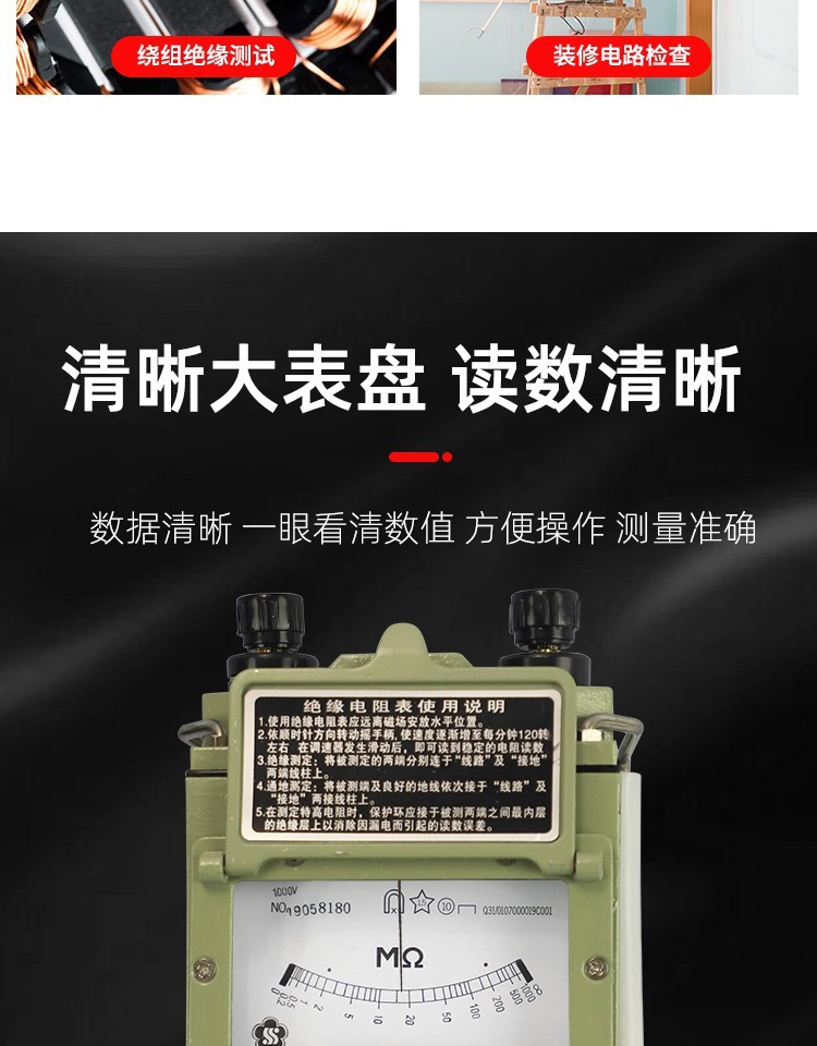 상하이 No.6 전기 미터 공장 Meg 브랜드 ZC25B-4 쉐이크 미터 1000V Megohmmeter 손 쉐이크 절연 저항 미터스토어 가기
