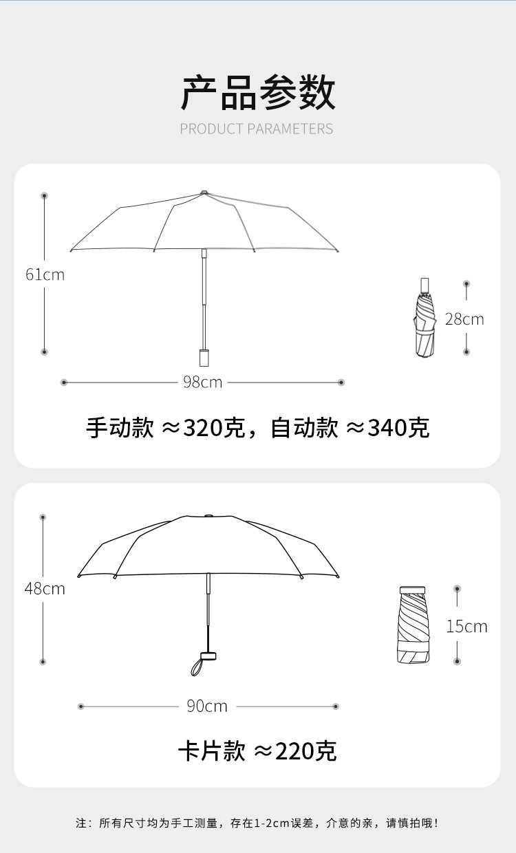 자동 우산 만화 태양 보호 자외선 보호 태양 우산 맑고 비 이중 목적 검은 휴대용 양산 접는 우산
