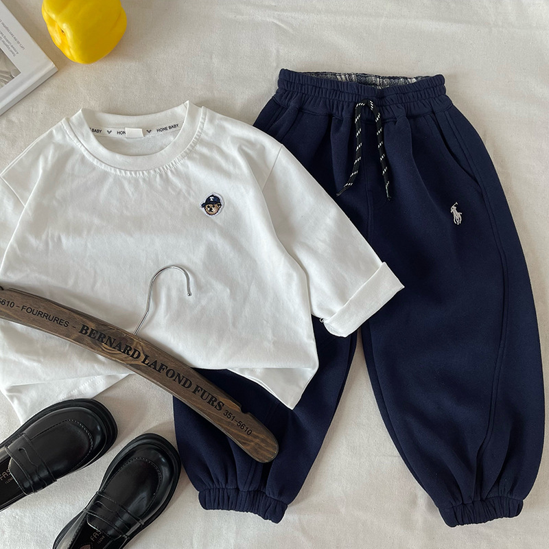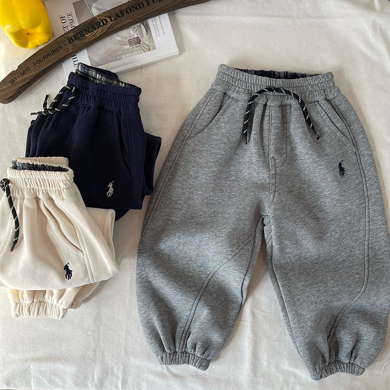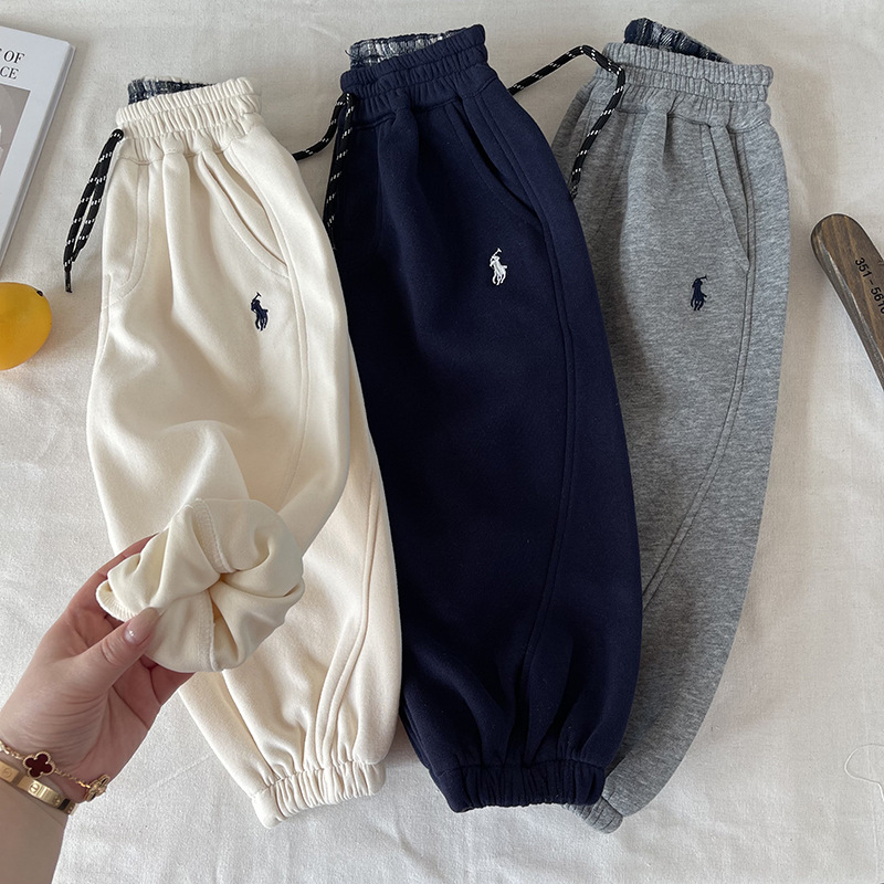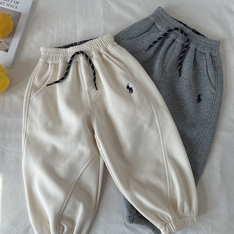 [마운틴 뷰] 어린이 바지 2025 봄 새 소년 소녀 수놓은 스포츠 바지 아기 아동복 도매스토어 가기