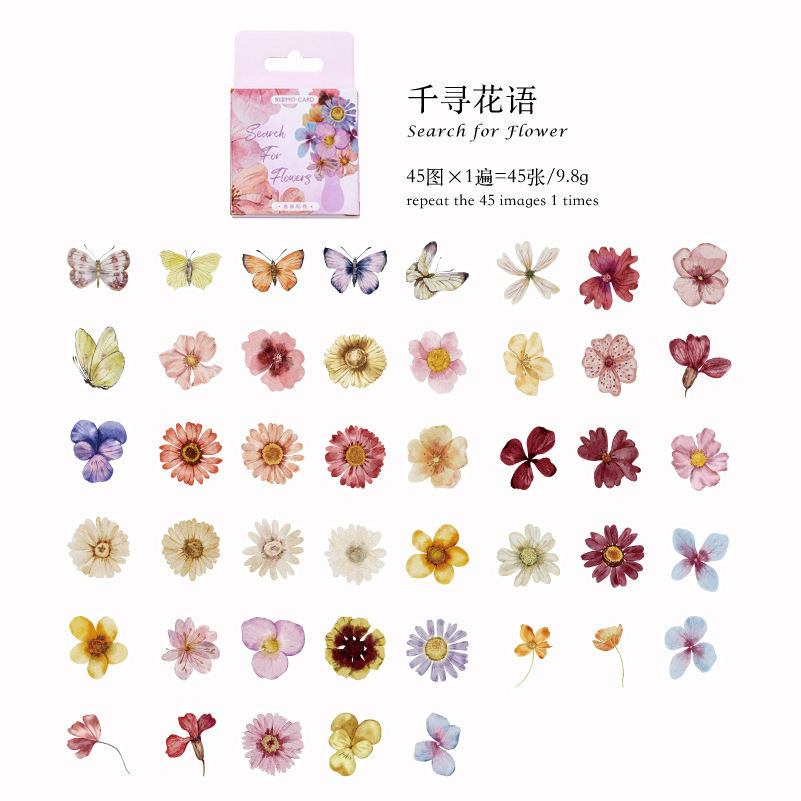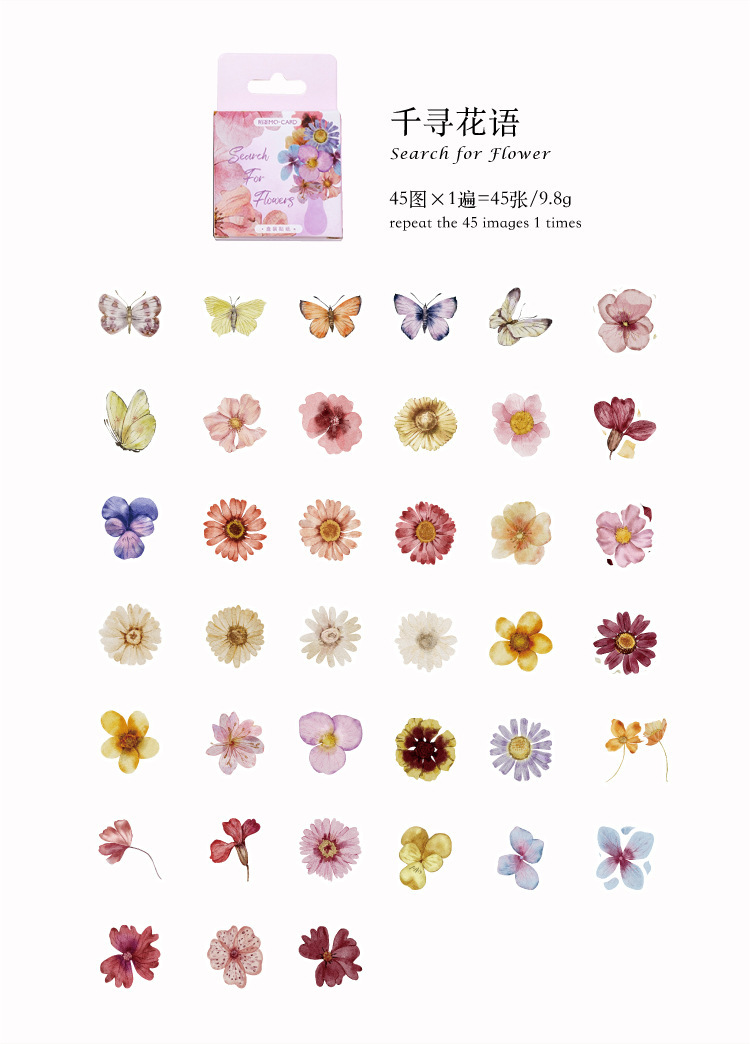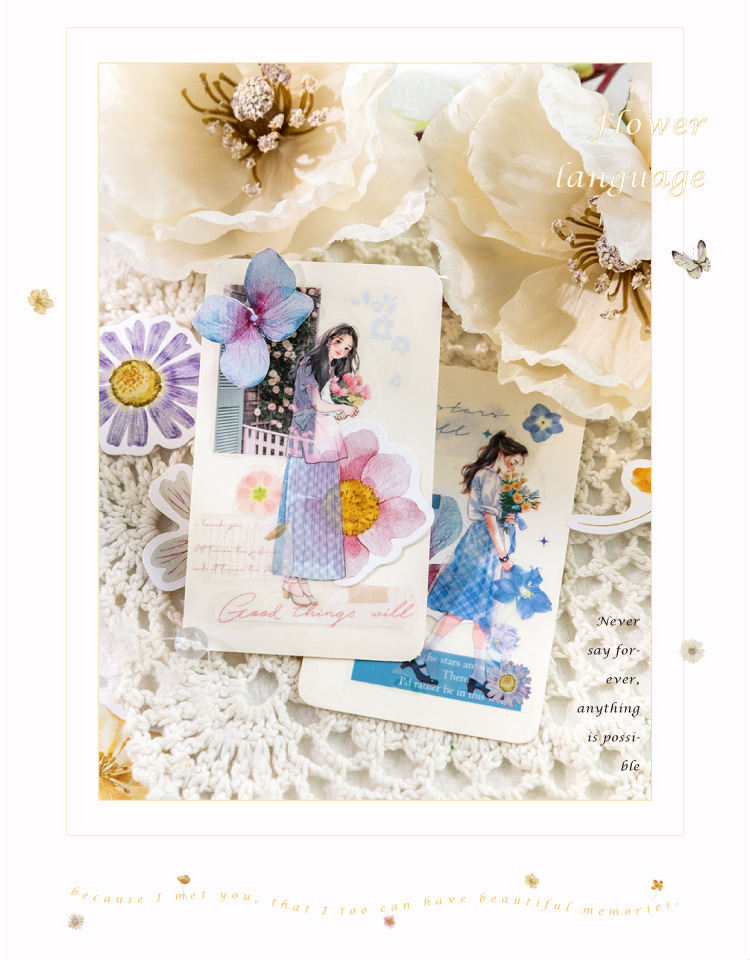 모 모 박스 스티커 치히로 꽃 언어 시리즈 스타일 복고풍 꽃 손 계정 DIY 장식 재료 밀봉 스티커스토어 가기
