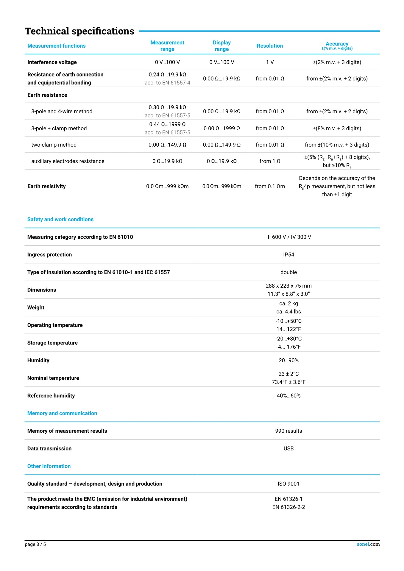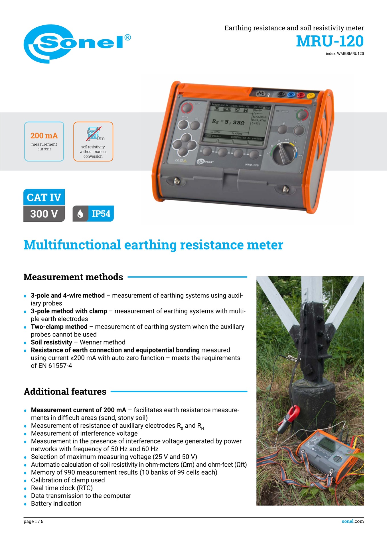 폴란드 SONEL S.A. (SONEL) MRU-120 접지 저항 검사자 수입 단층 탐지기