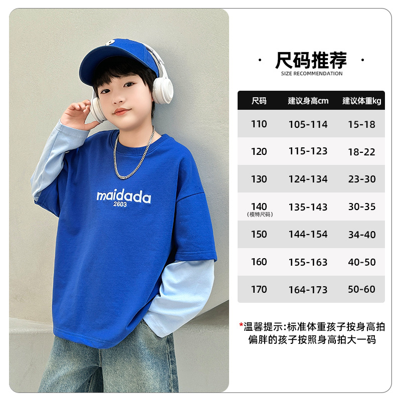2025 가을 테리 코튼 대비 색상 남아용 스웨트셔츠, 순면 팬더 원형 중대형 아동용 페이크 투피스 티셔츠