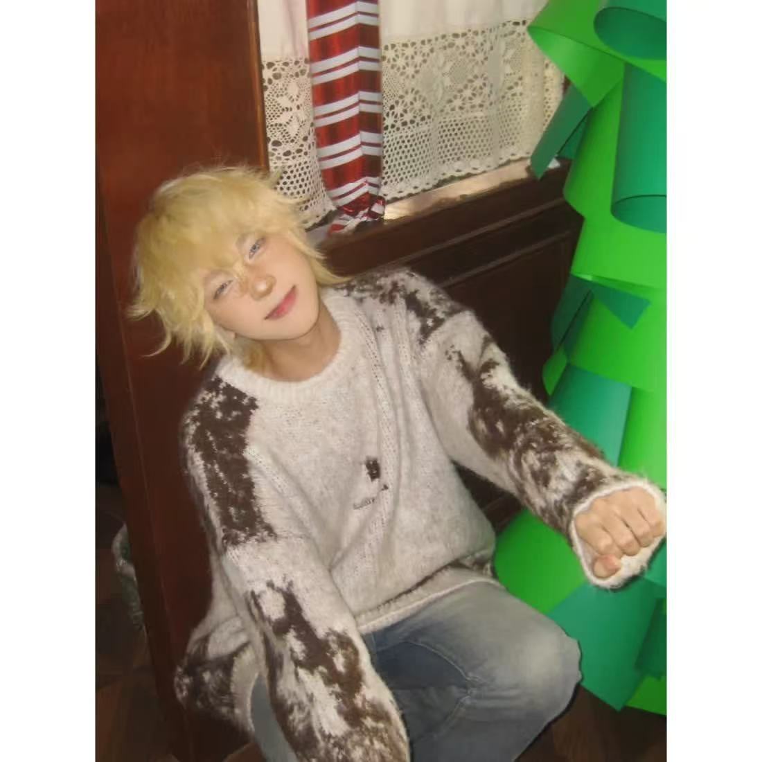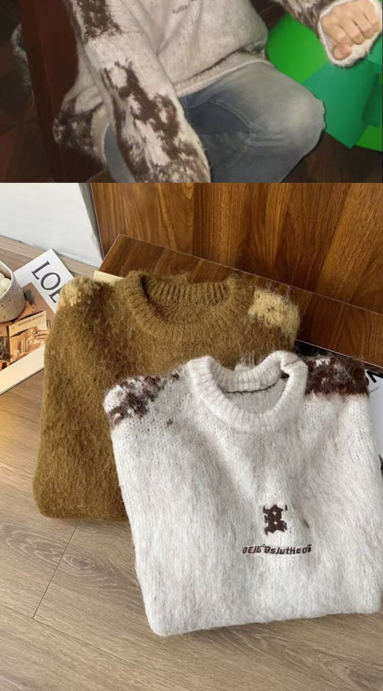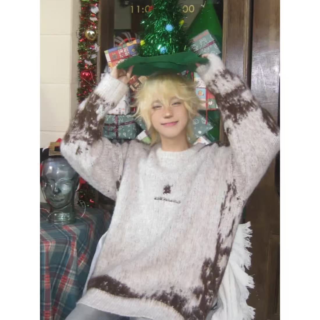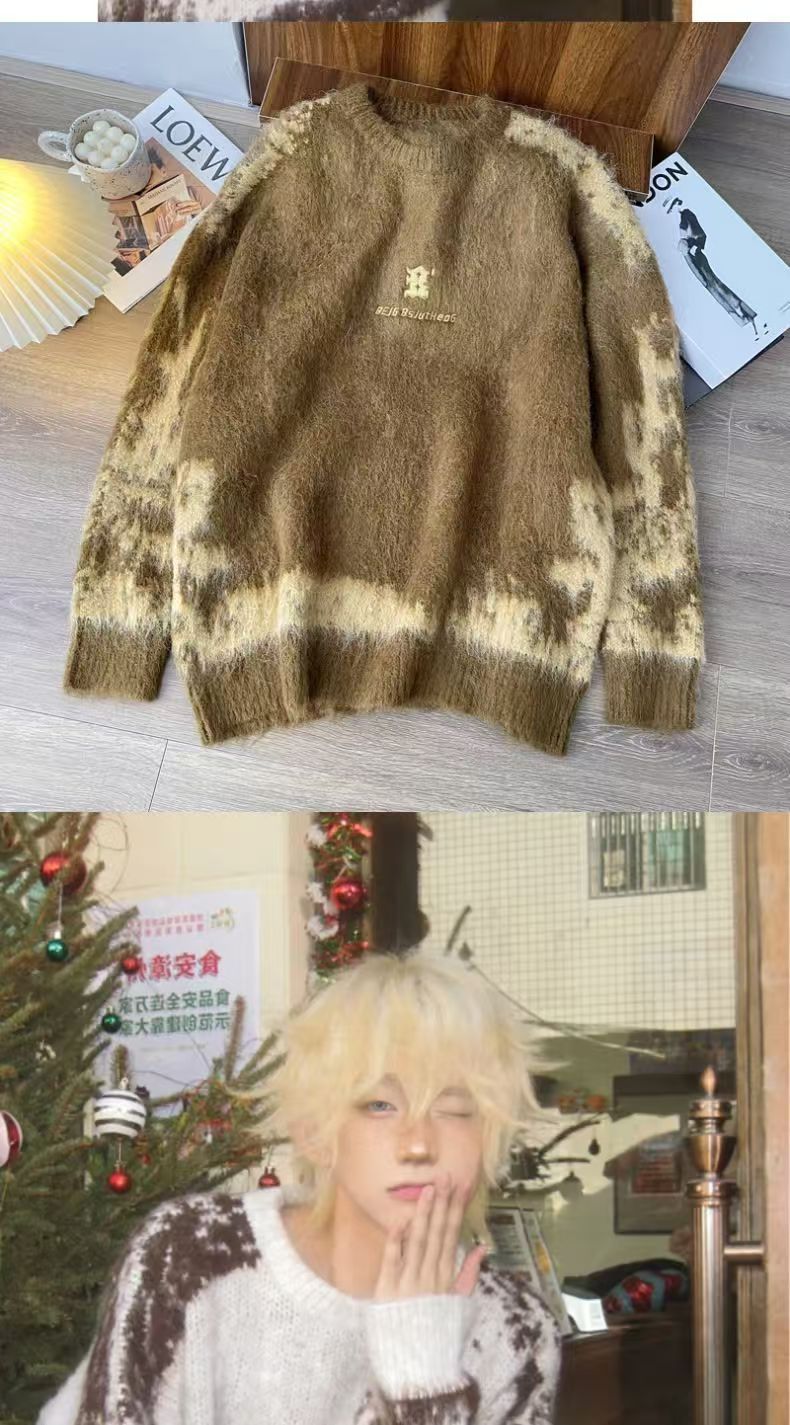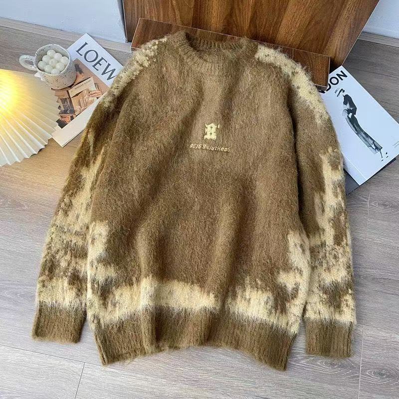 아메리칸 스타일 레트로 콘트라스트 컬러 크루 넥 스웨터 남성 가을 및 겨울 두꺼운 레이드 백 스타일 클렌핏 넥타이 염색 니트웨어 긴팔 스웨터스토어 가기