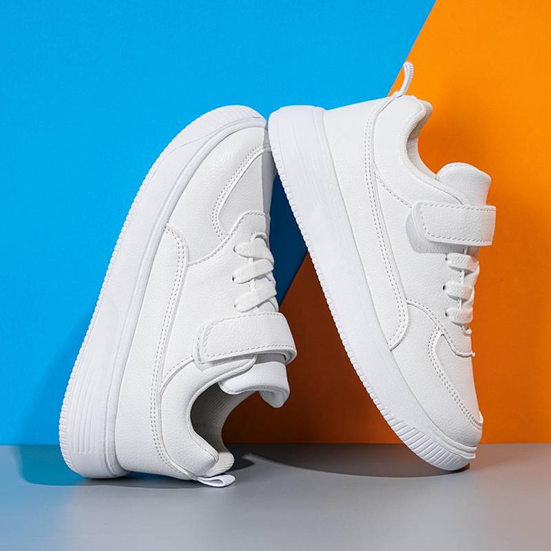 소년 운동화 2025 봄 새로운 어린이 단색 흰색 신발 큰 어린이 학생 여자를위한 흰색 캐주얼 신발