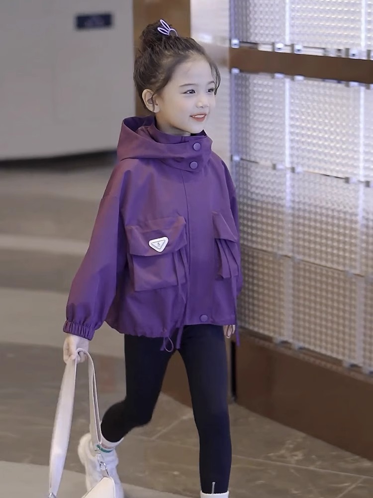 소녀의 충전 재킷 봄과 가을 2025 새로운 어린이 봄 후드 재킷 탑 소녀의 세련된 조수스토어 가기
