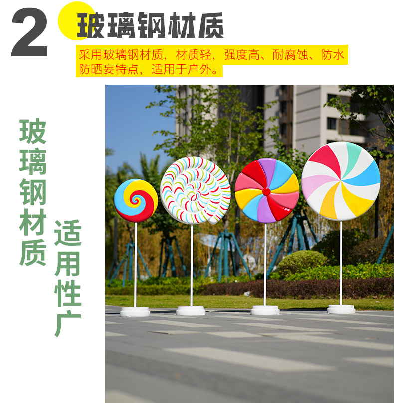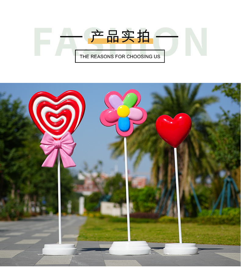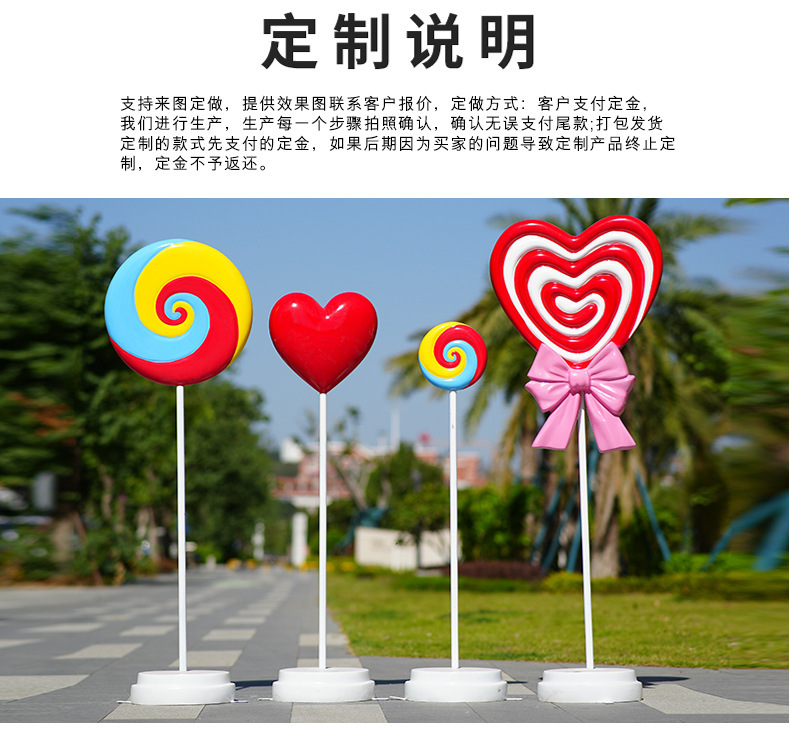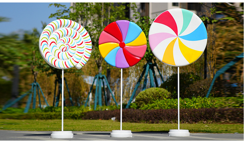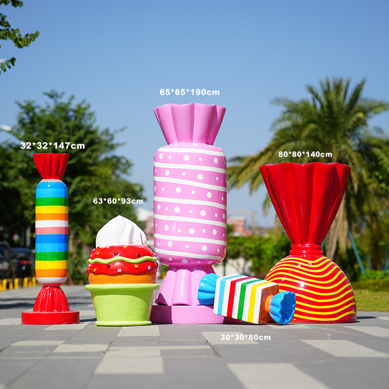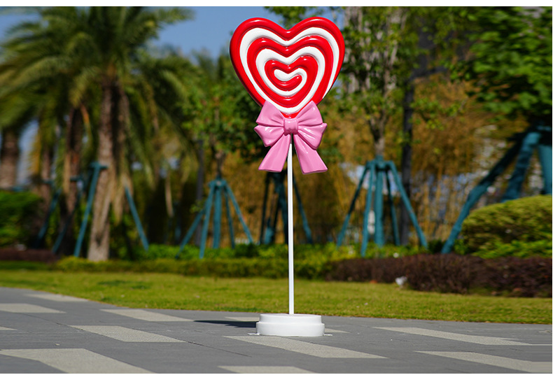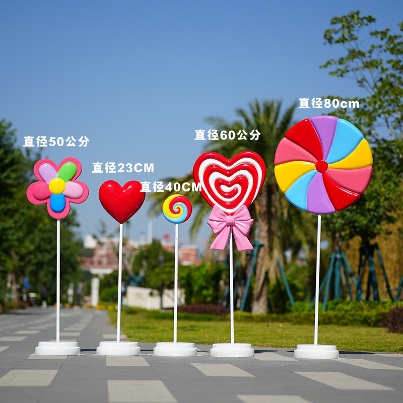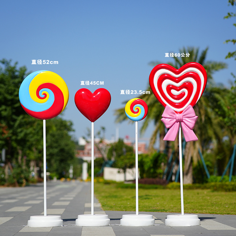 모조 사탕 롤리팝 목발 사랑 케이크 디저트 장식품 야외 유리 섬유 강화 플라스틱 조각 정원 조경 장식