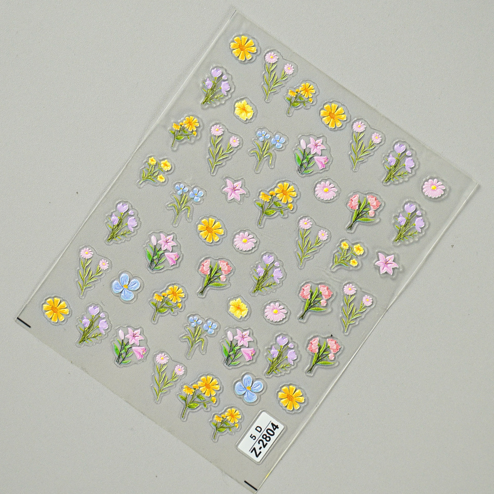 Redanco 새로운 5D 양각 바람 필드에 작은 야생 꽃 네일 아트 스티커 3 차원 네일 데칼 Z-2804