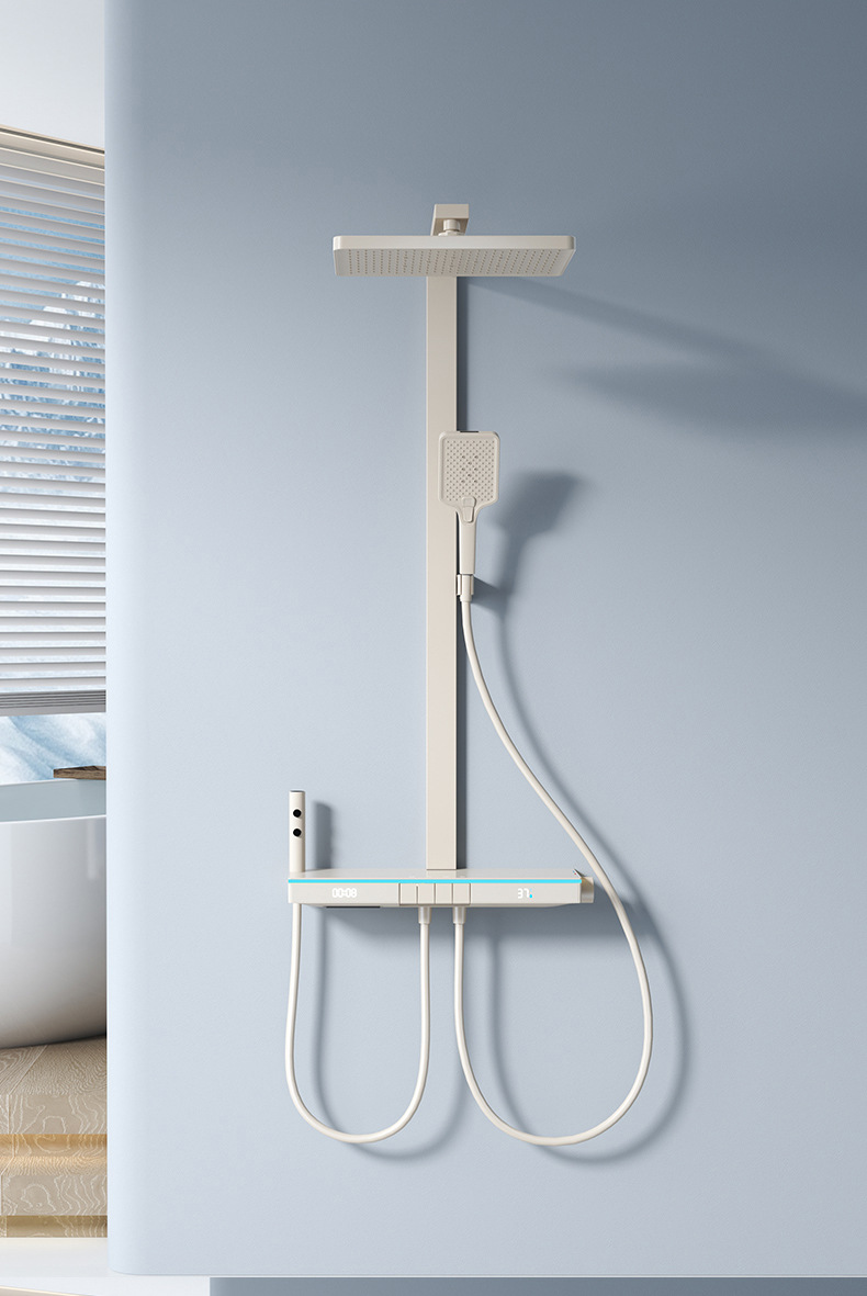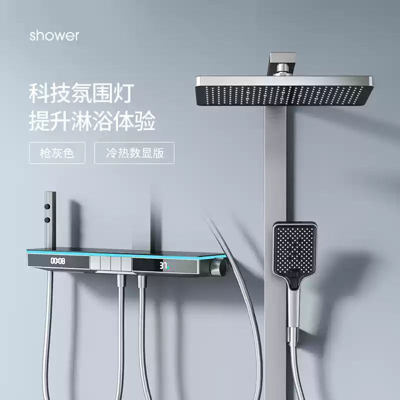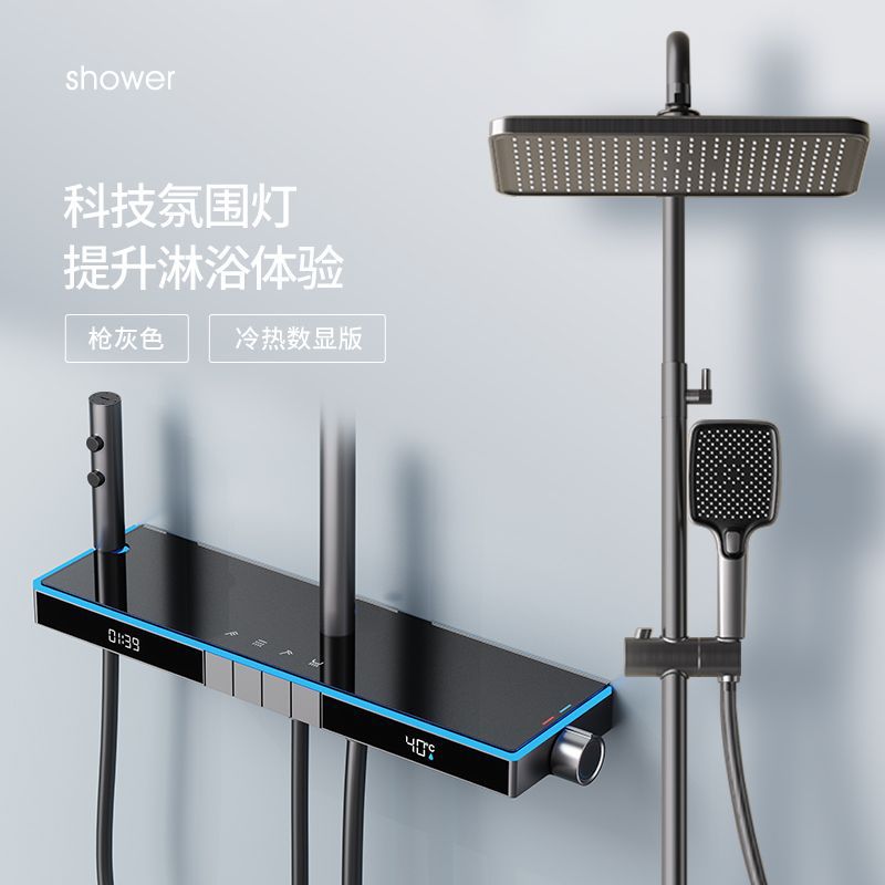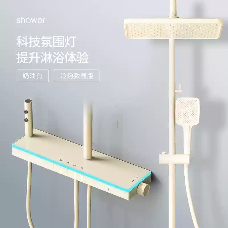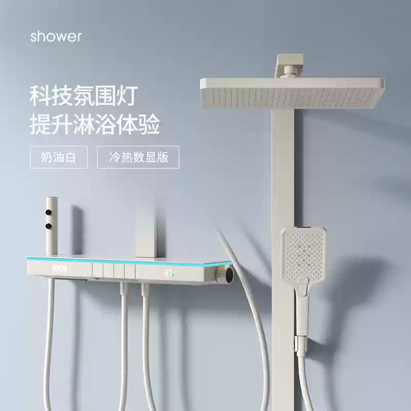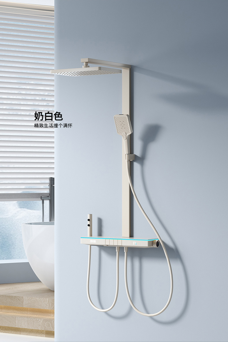 U8 디지털 디스플레이 일정한 온도 샤워 세트 욕실 밀크 화이트 건 그레이 분위기 램프 과급 샤워 비 샤워