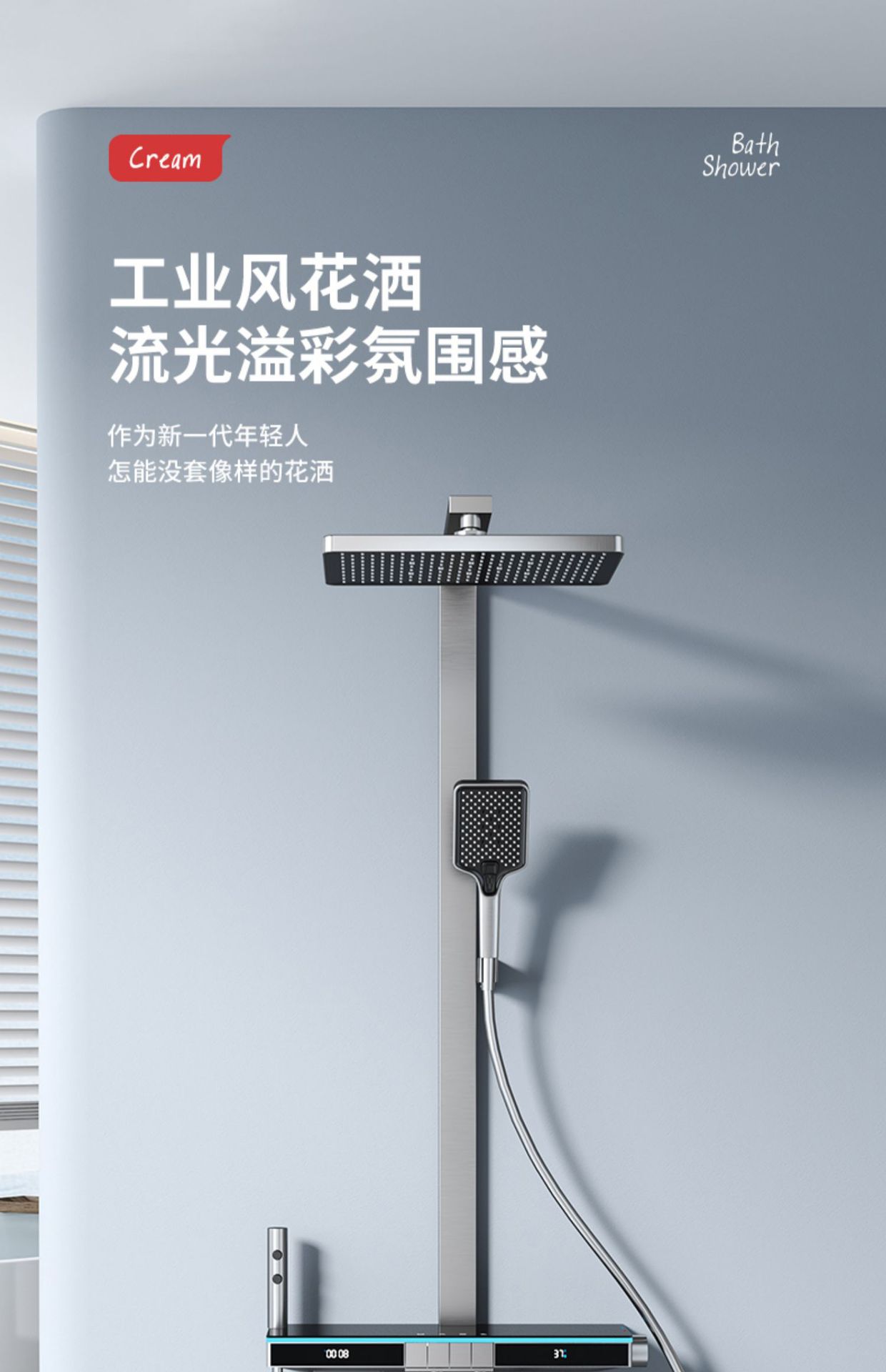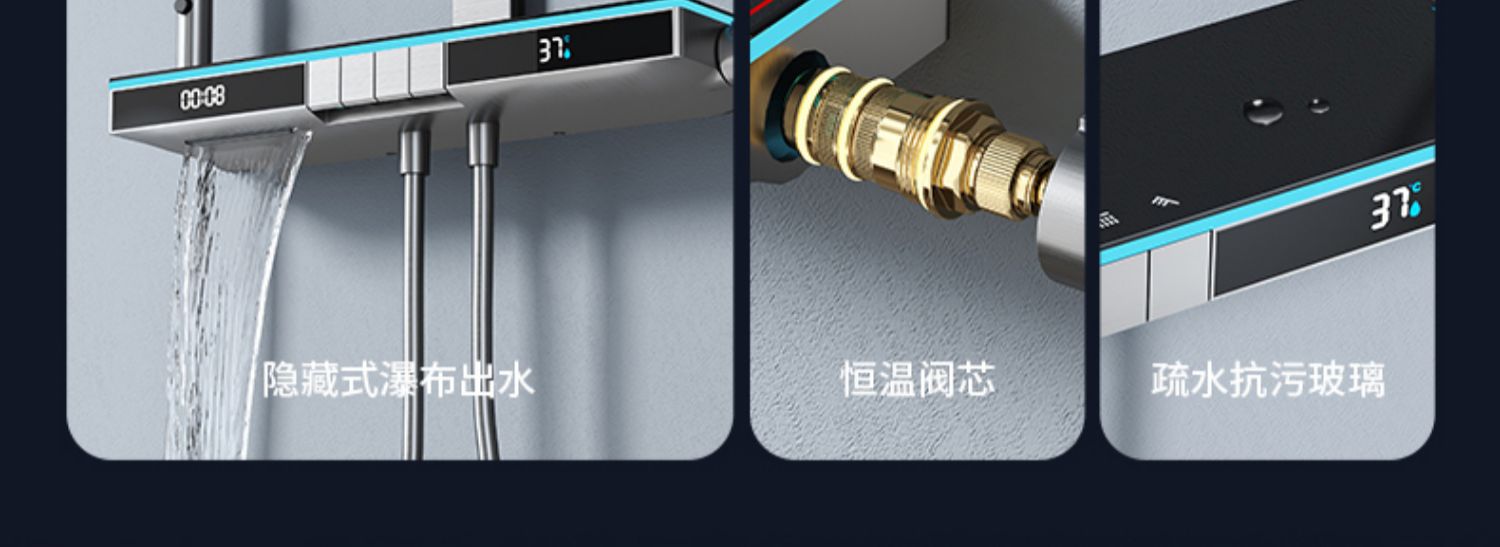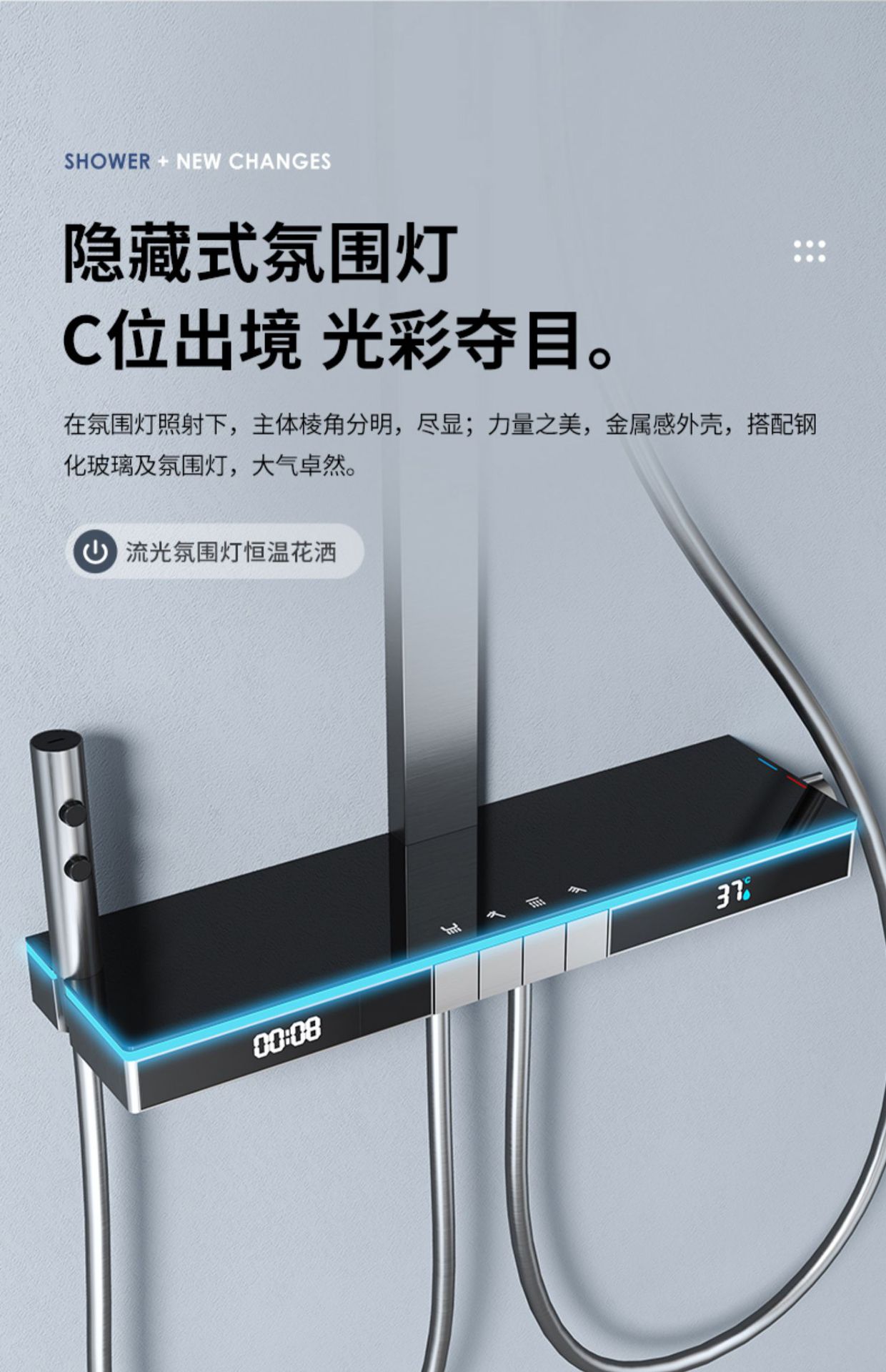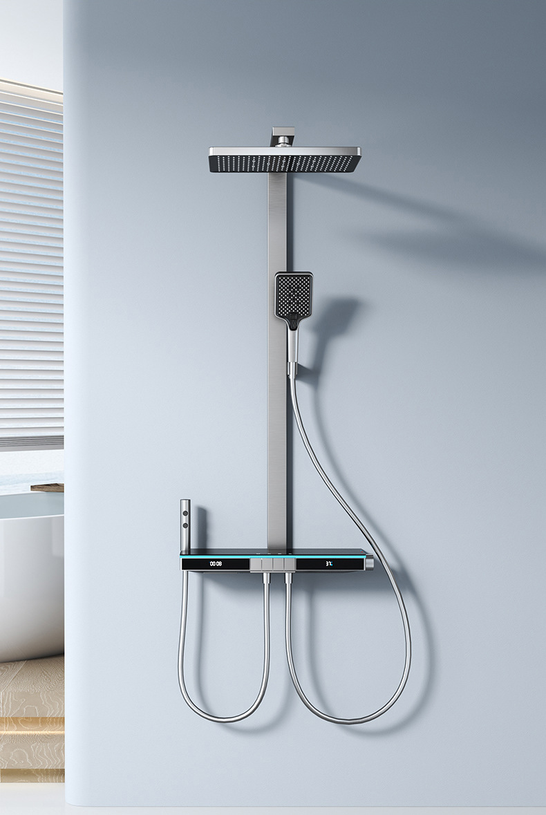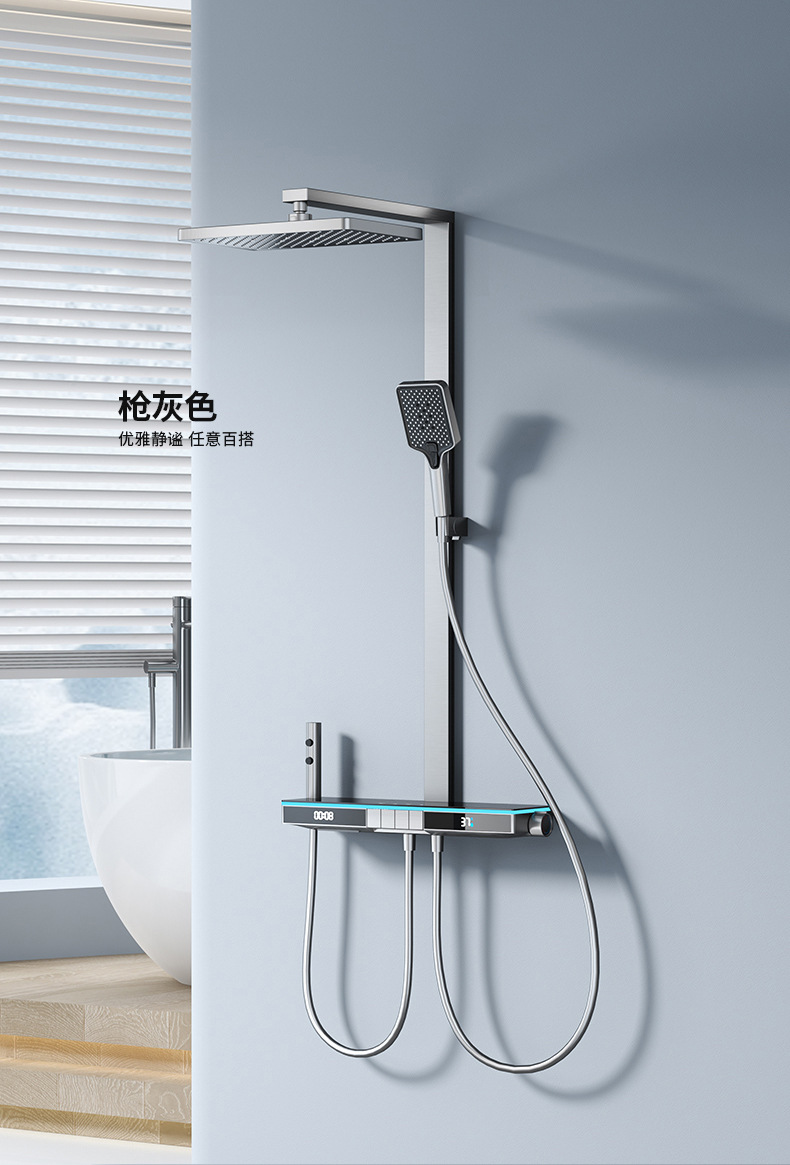 U8 디지털 디스플레이 일정한 온도 샤워 세트 욕실 밀크 화이트 건 그레이 분위기 램프 과급 샤워 비 샤워