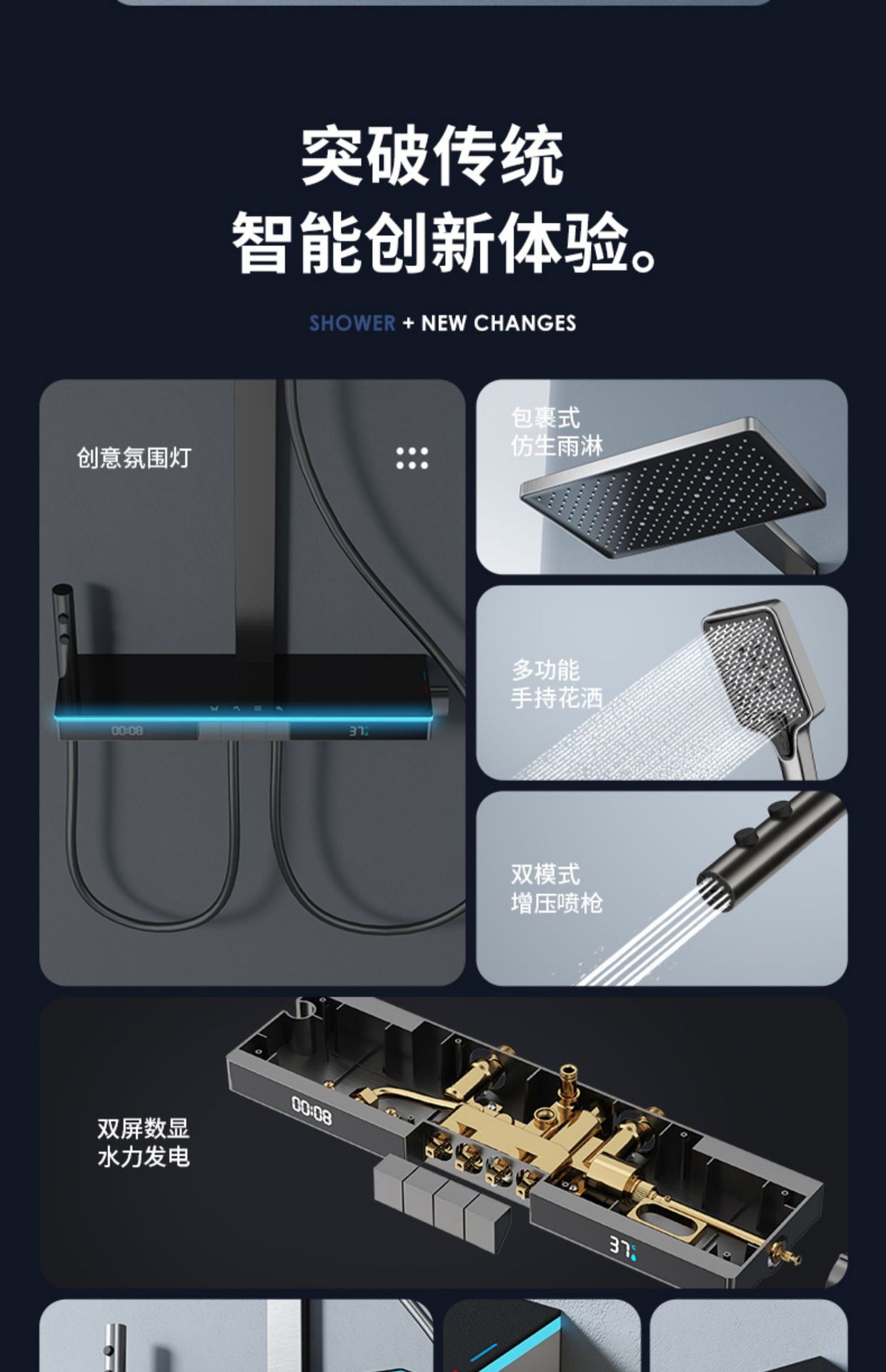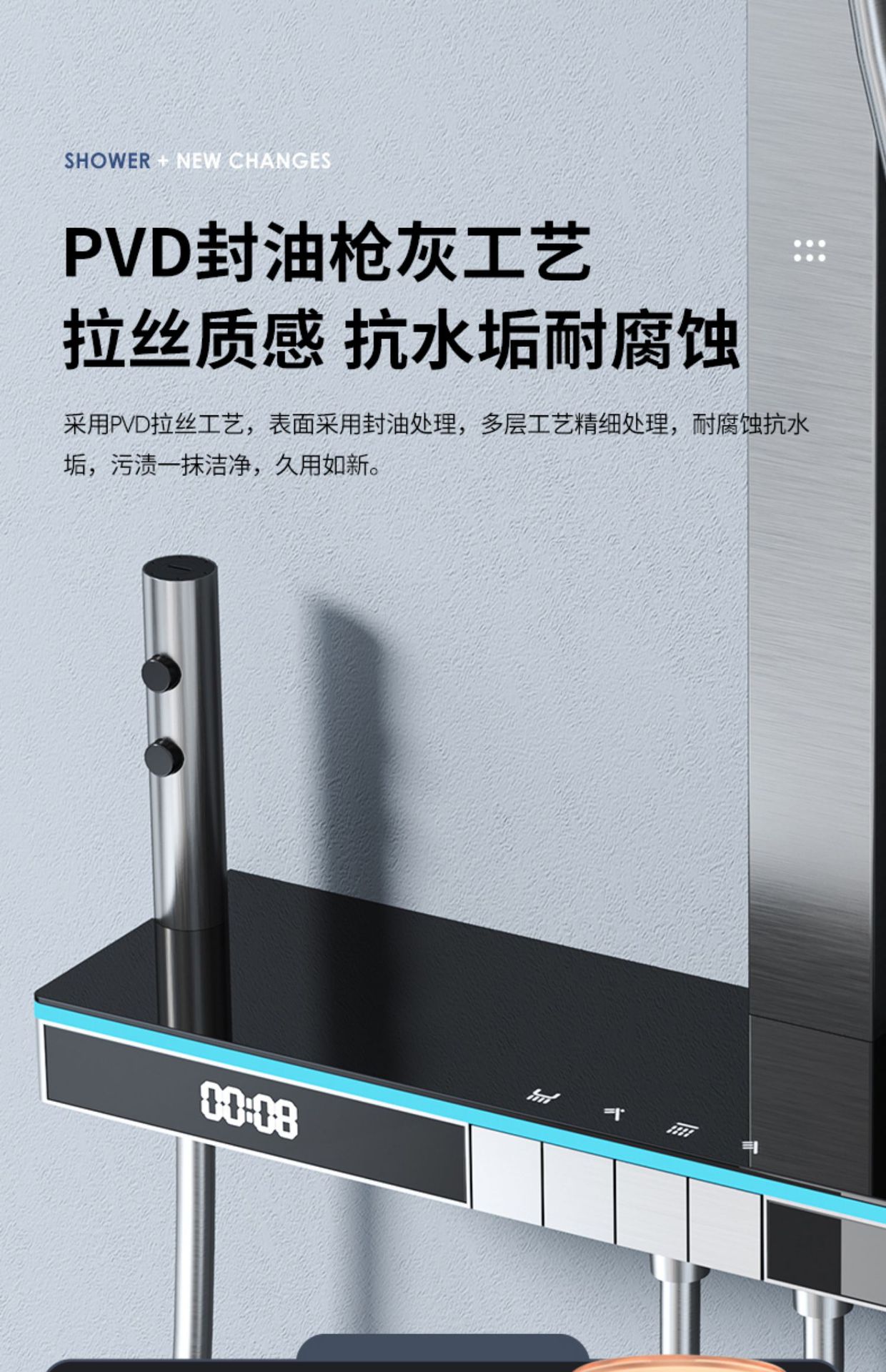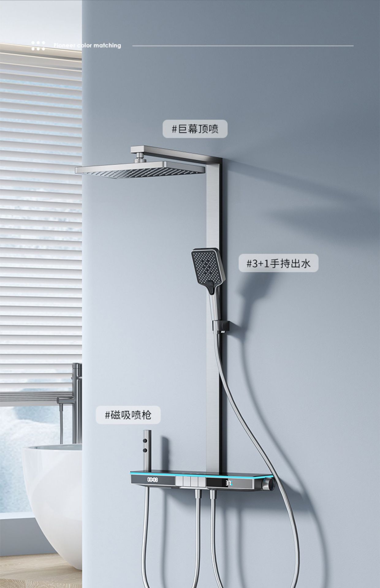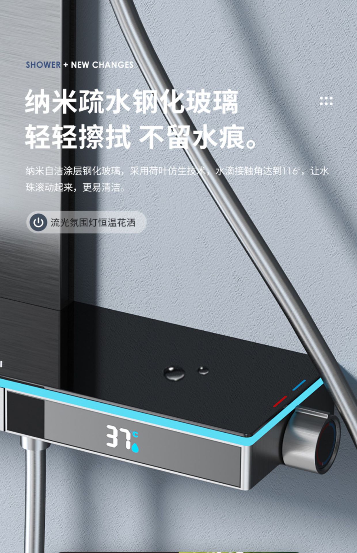 U8 디지털 디스플레이 일정한 온도 샤워 세트 욕실 밀크 화이트 건 그레이 분위기 램프 과급 샤워 비 샤워