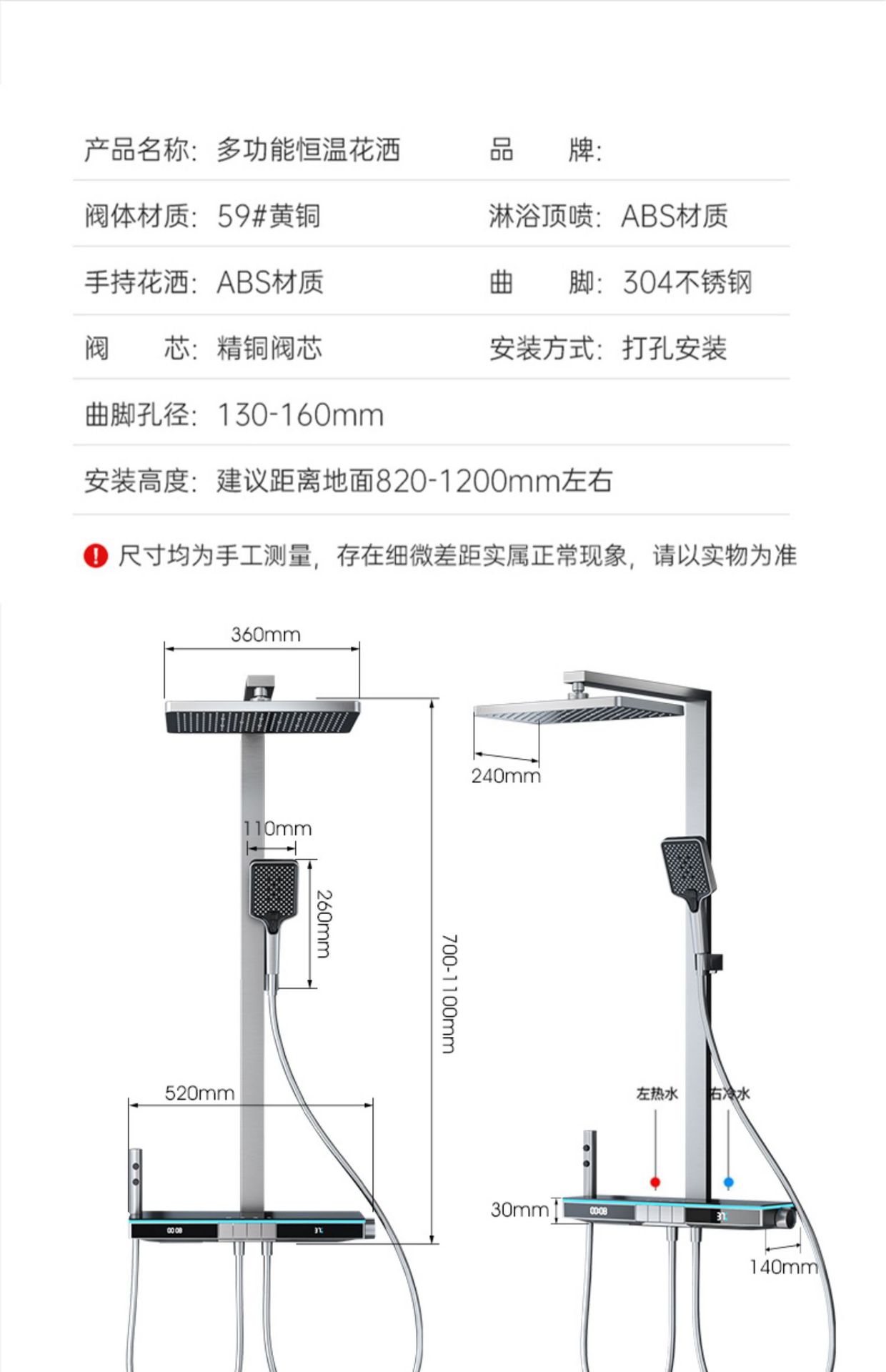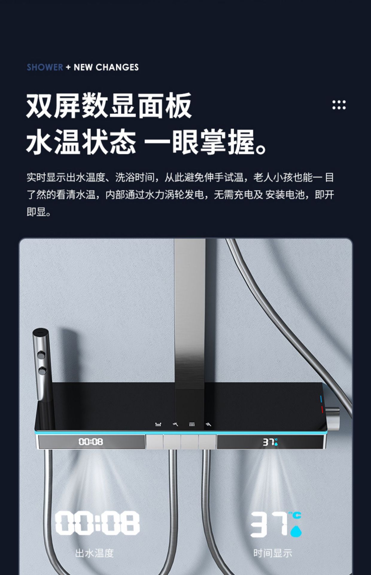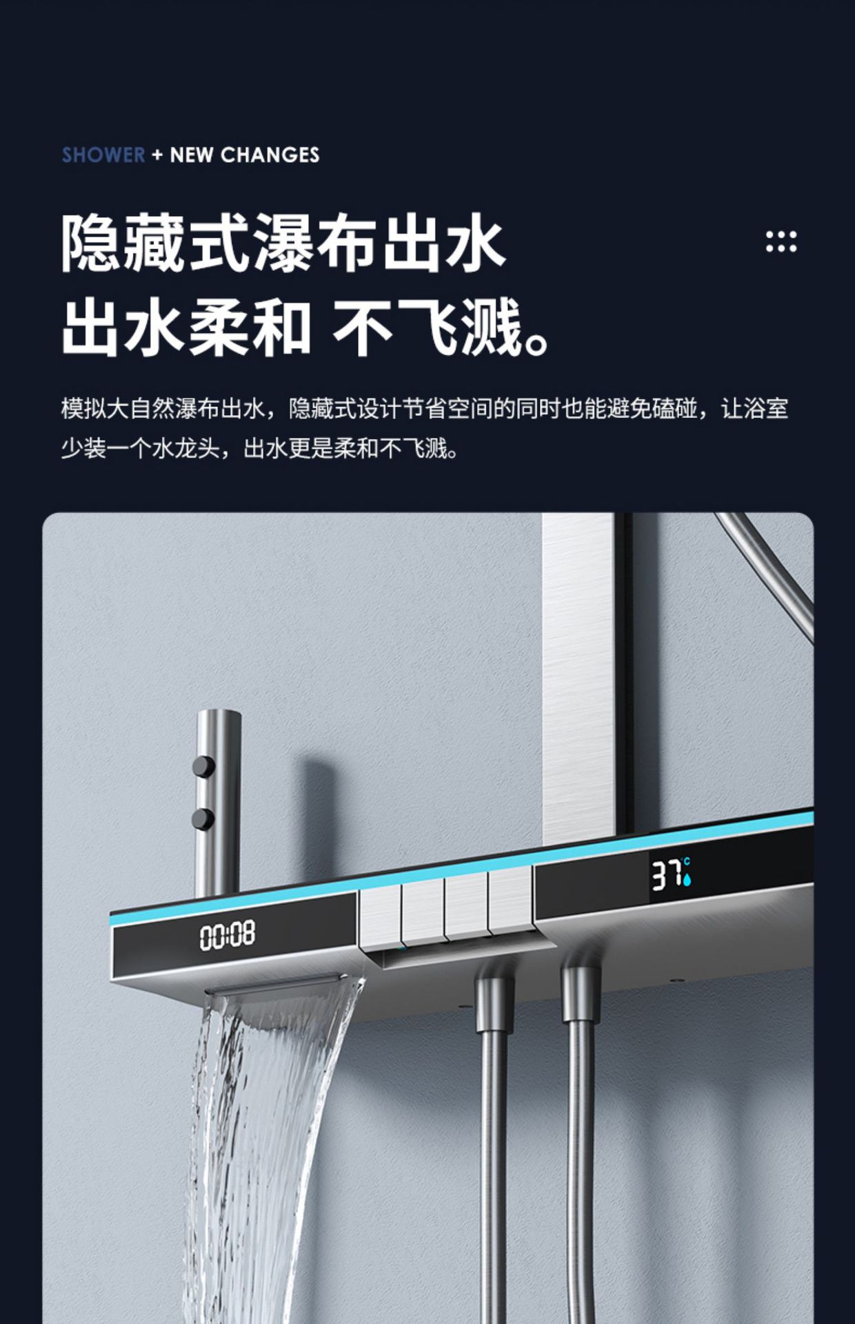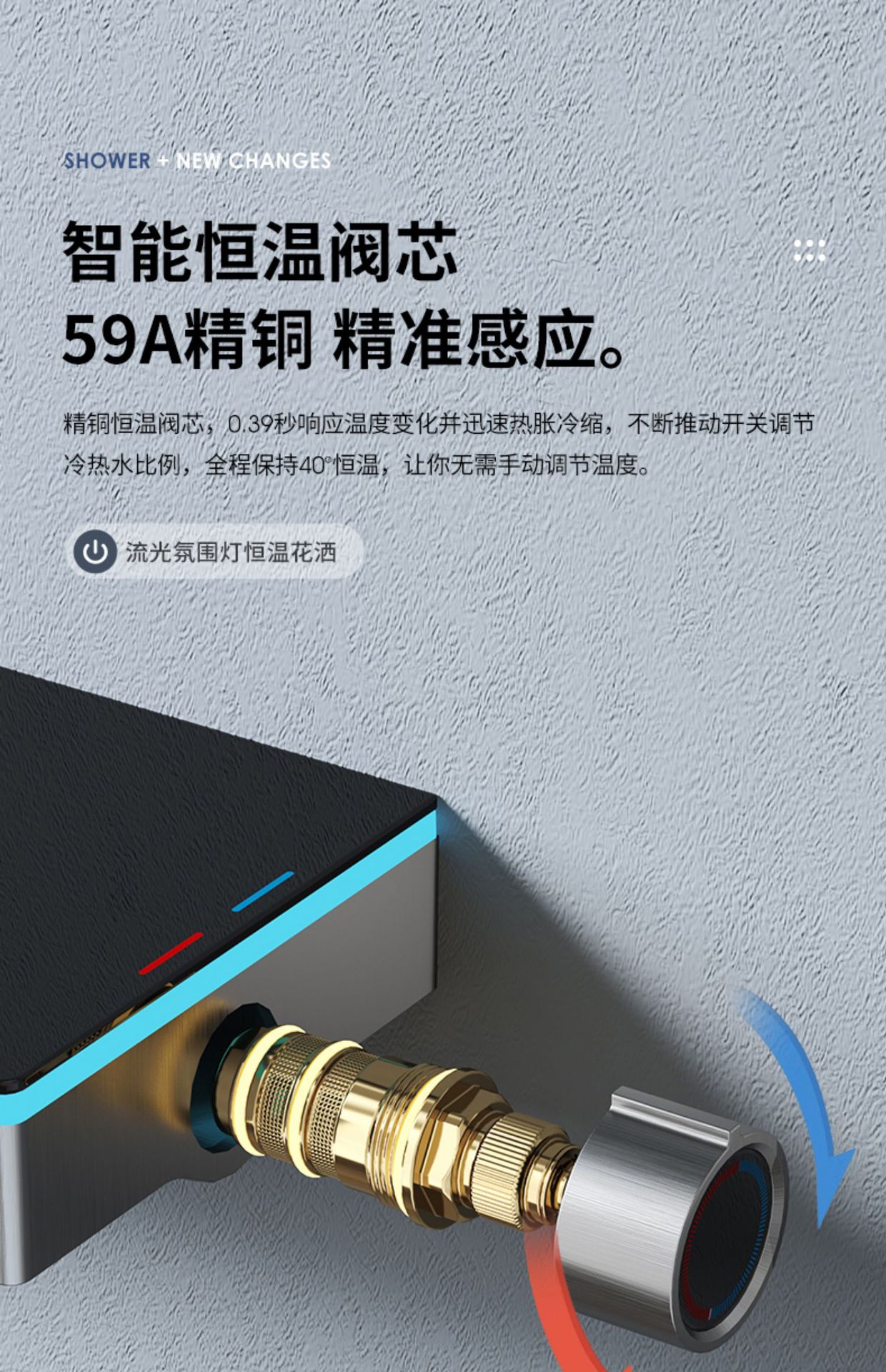 U8 디지털 디스플레이 일정한 온도 샤워 세트 욕실 밀크 화이트 건 그레이 분위기 램프 과급 샤워 비 샤워