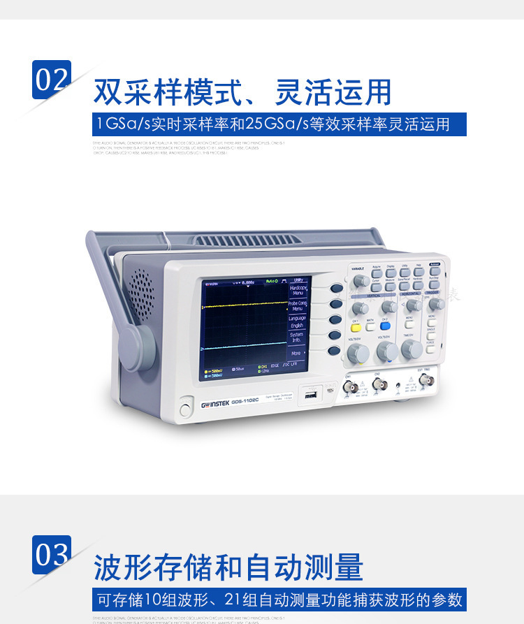 고정 weft GWINSTEK 100M 듀얼 채널 디지털 저장 오실로스코프 1G 샘플링 속도 GDS-1102C/1072C